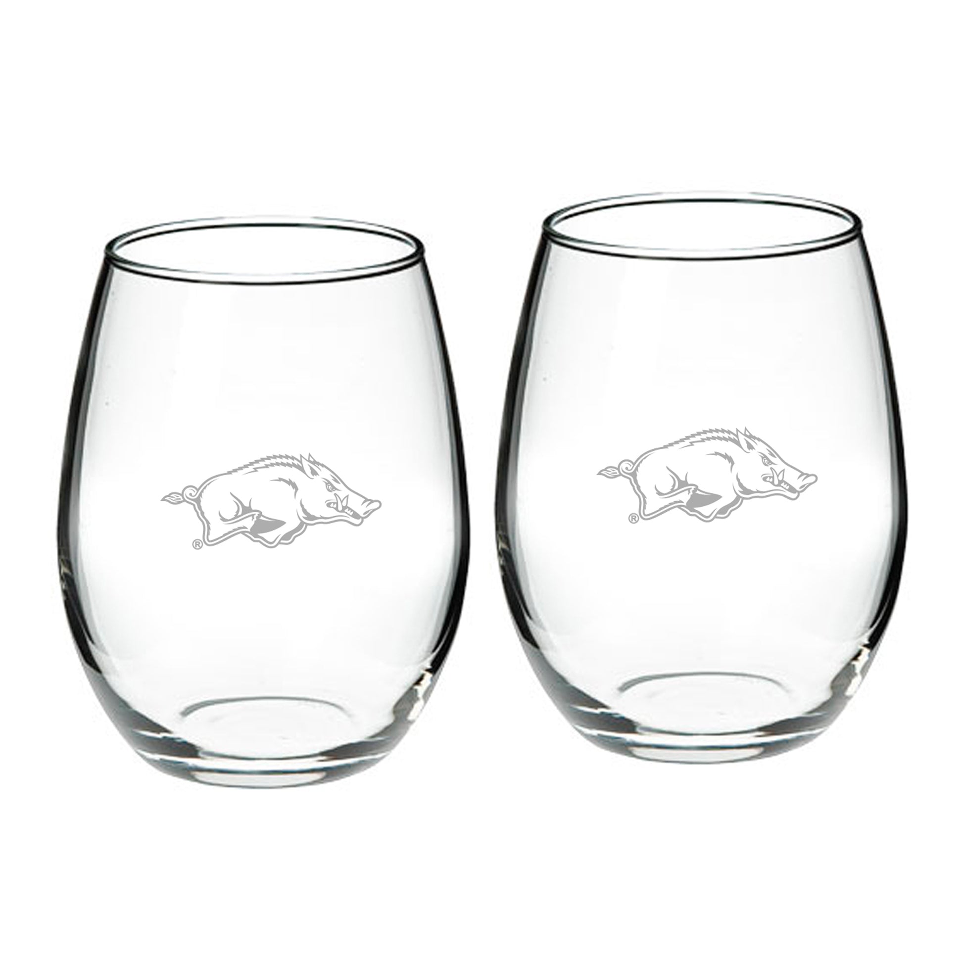 Celebrate every Arkansas Razorbacks win by enjoying your drink of choice out of this 21oz. 2-Piece Stemless Wine Glass Set. The glasses feature crisp etched graphics, putting your die-hard fandom on full display with every use. Pour up a drink while showing off your Arkansas Razorbacks pride at the next gathering.