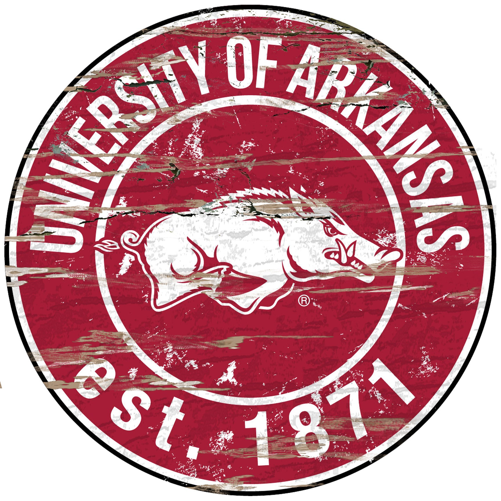 Arkansas Razorbacks 23.5" Distressed Round Sign