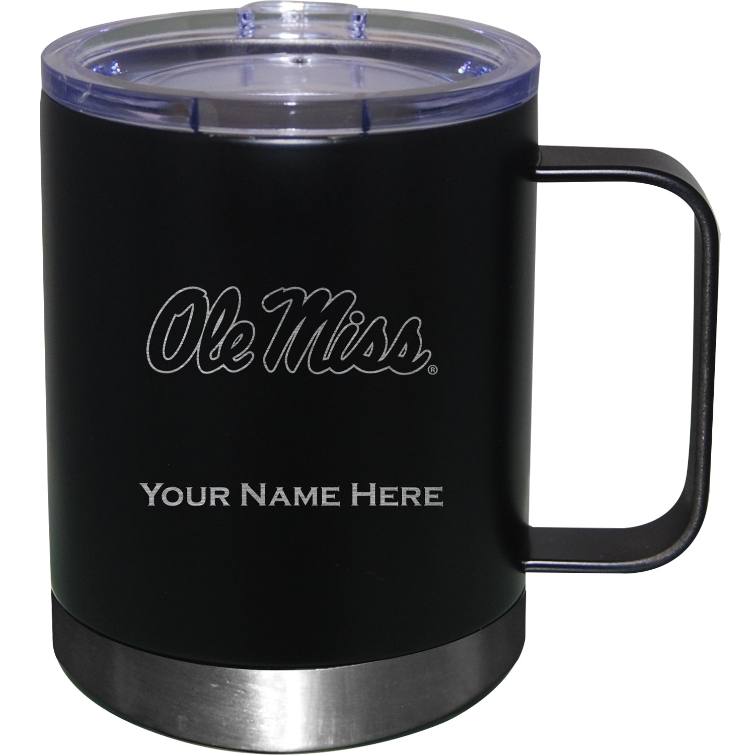Black Ole Miss Rebels 12oz. Personalized Stainless Steel Lowball with Handle
