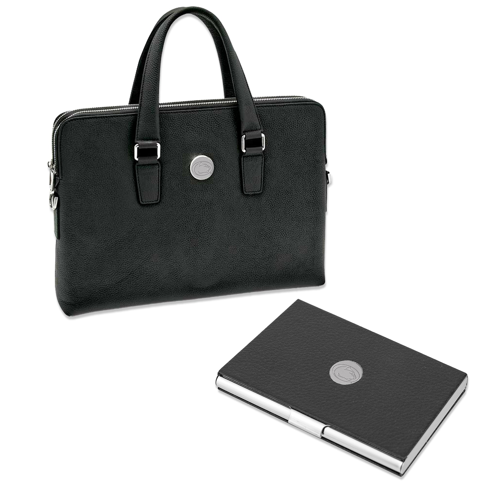 This Penn State Nittany Lions Executive Set is just the spirited accessory you were looking for. It includes a genuine leather briefcase perfect for all of your essentials and a leatherette business card case. Complete with etched silver 3D UV printed Penn State Nittany Lions medallions, this stylish addition to your collection will ensure everyone knows where your loyalty lies.