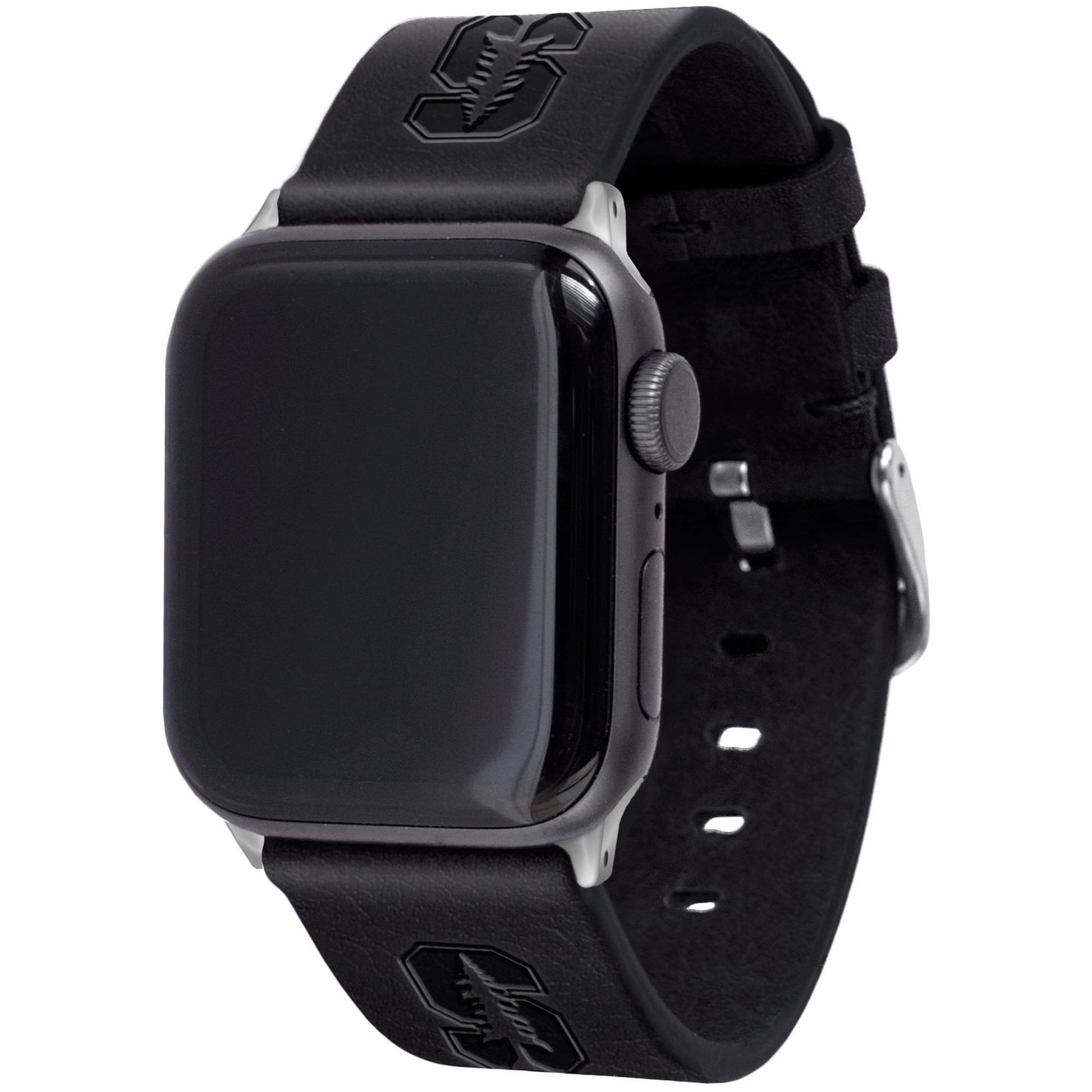 This Stanford Cardinal Apple Watch band adds some fandom to your wrist. It features stainless steel mechanisms and a dual pin clasp closure that keeps your watch secure. Complete with debossed Stanford Cardinal graphics, this leather band lets you proudly rep your favorite team everywhere you go.