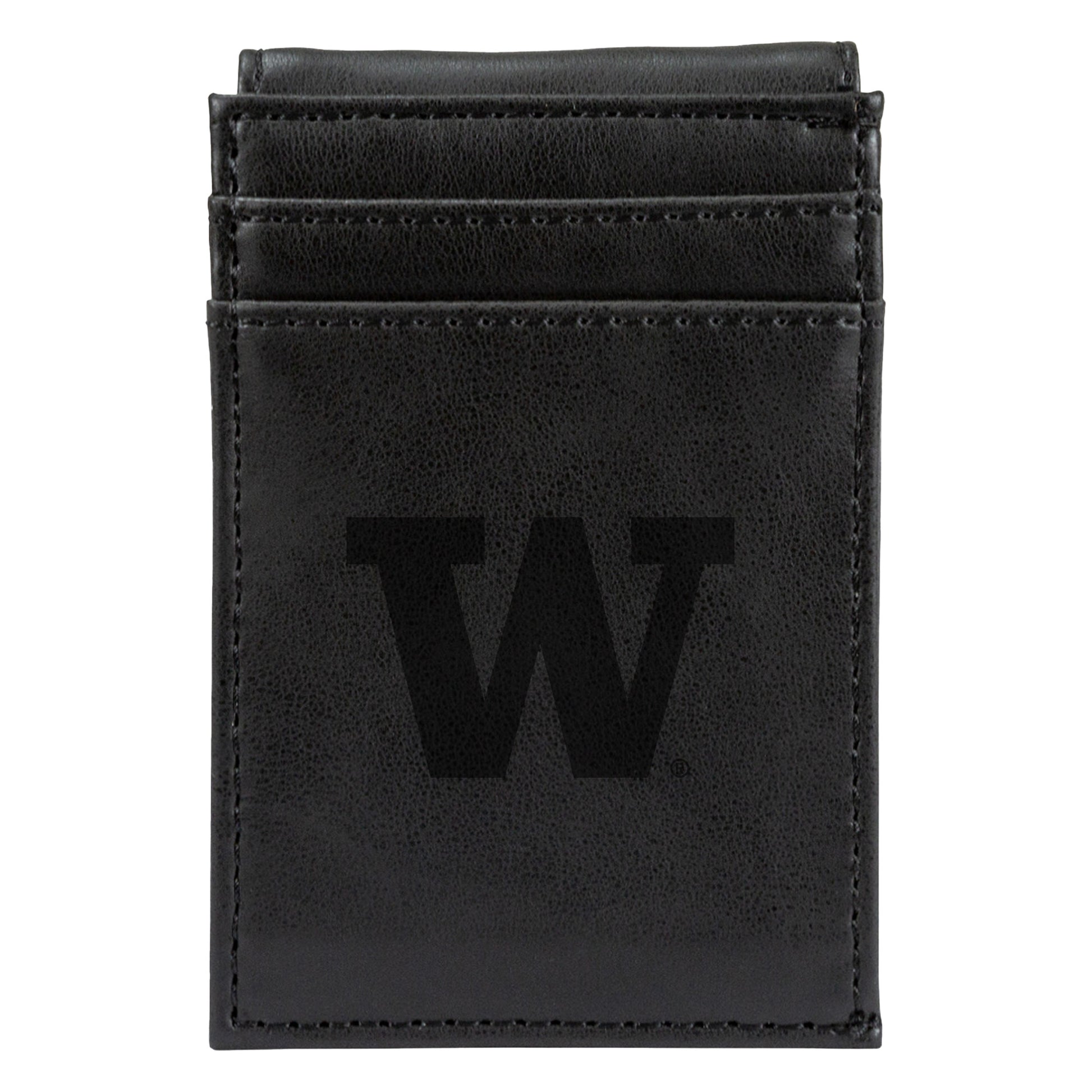 Take your team spirit everywhere you go with the Washington Huskies Front Pocket Wallet. Featuring a faux leather design and slim profile, this wallet has plenty of room for your cash and cards. And the laser-engraved graphics let you show your Washington Huskies pride while you keep your essentials secure.