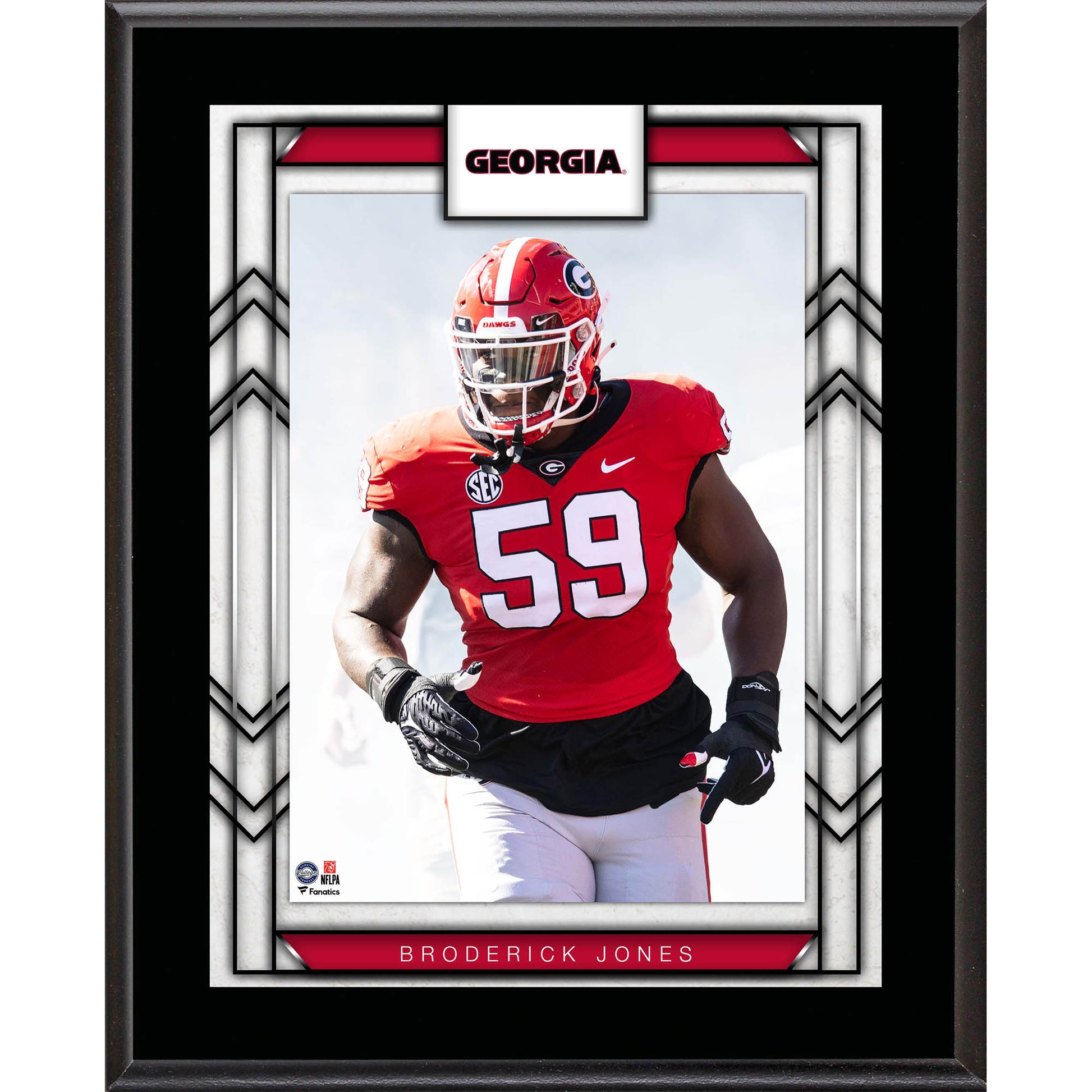 Showcase your favorite Georgia Bulldogs player with this Broderick Jones 10.5" x 13" Sublimated Player Plaque. Ready to hang in your home or office, it features Broderick Jones making a play on the field to make it the perfect plaque to represent your Georgia Bulldogs fandom.