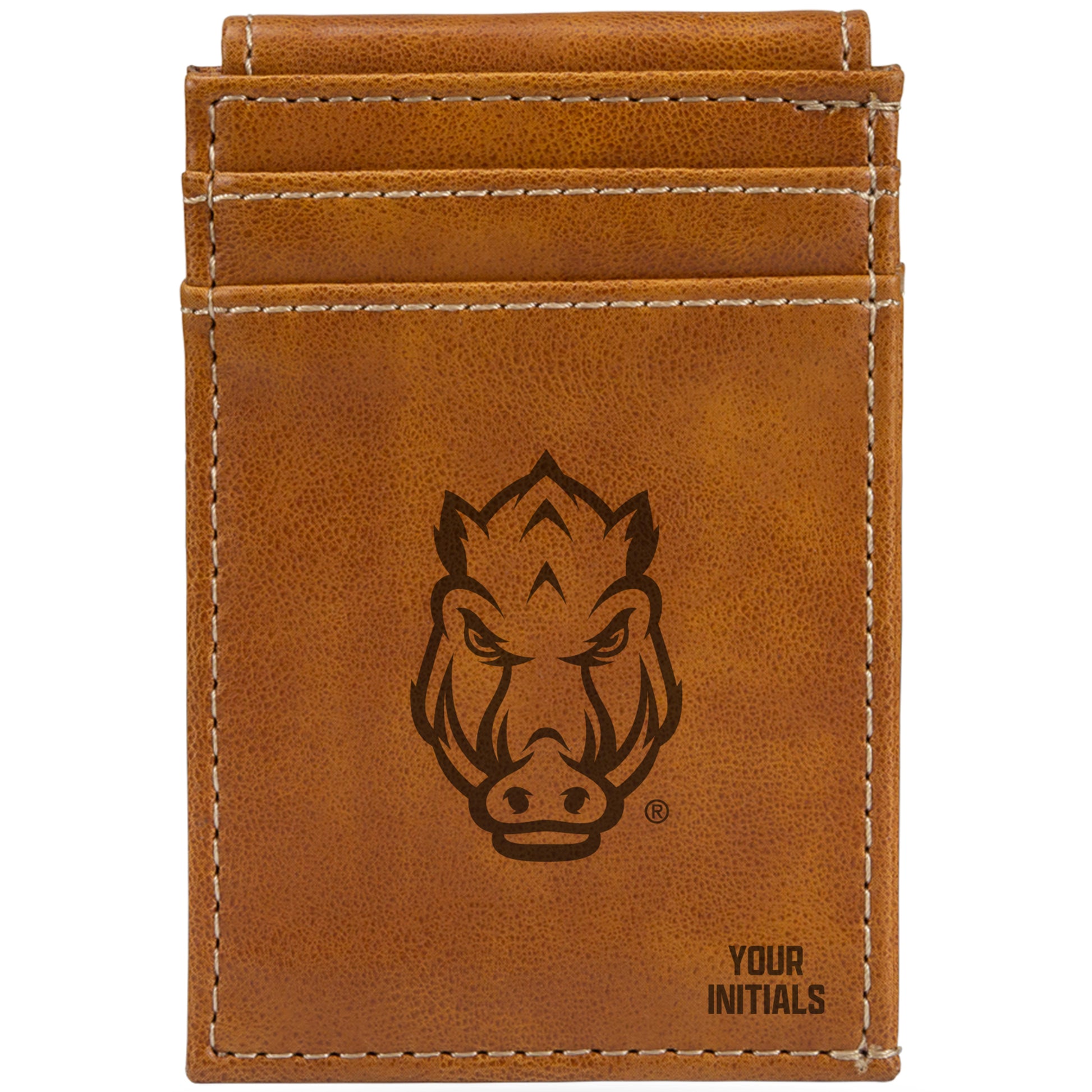 Brown Arkansas Razorbacks Personalized Front Pocket Wallet