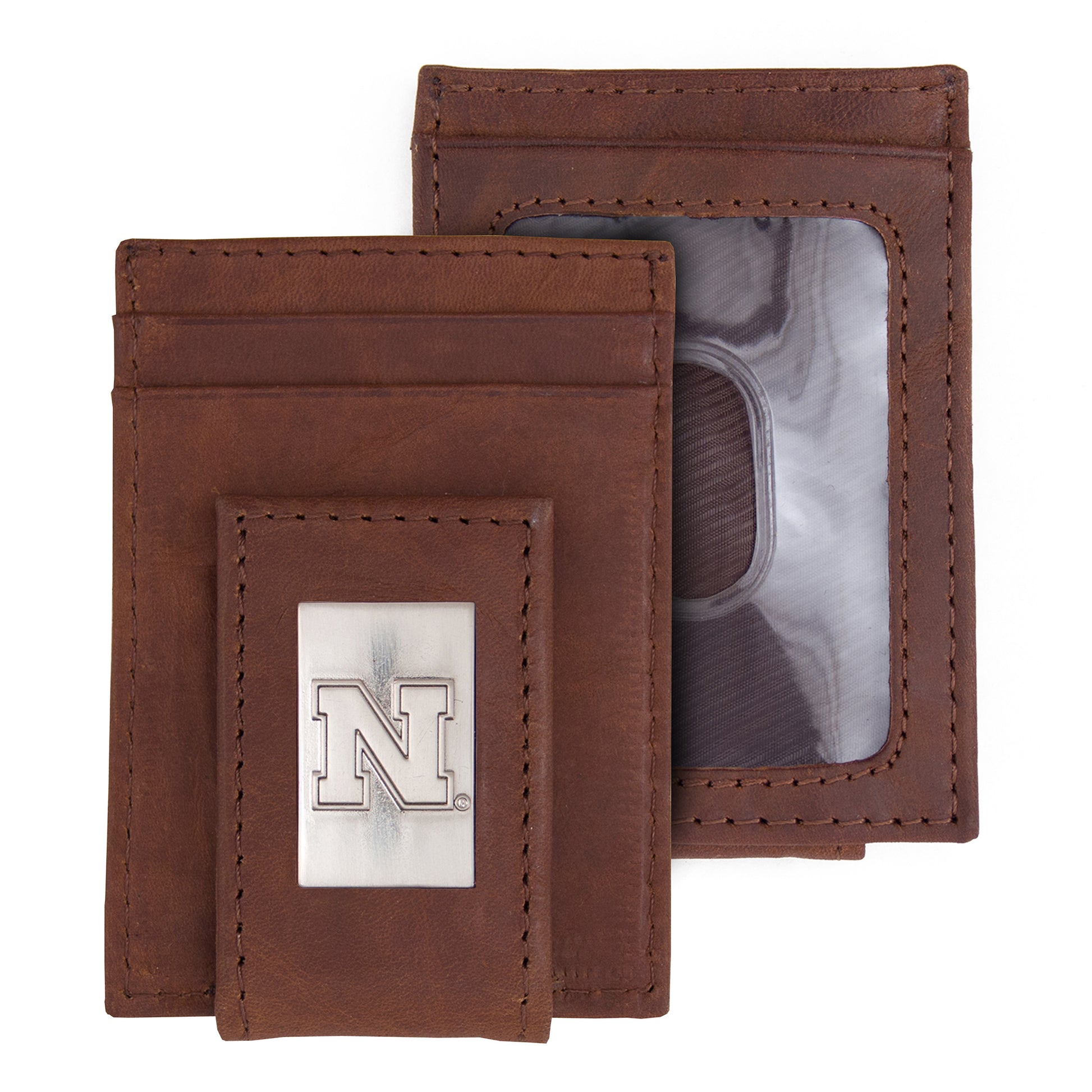 Brown Nebraska Huskers Leather Front Pocket Wallet