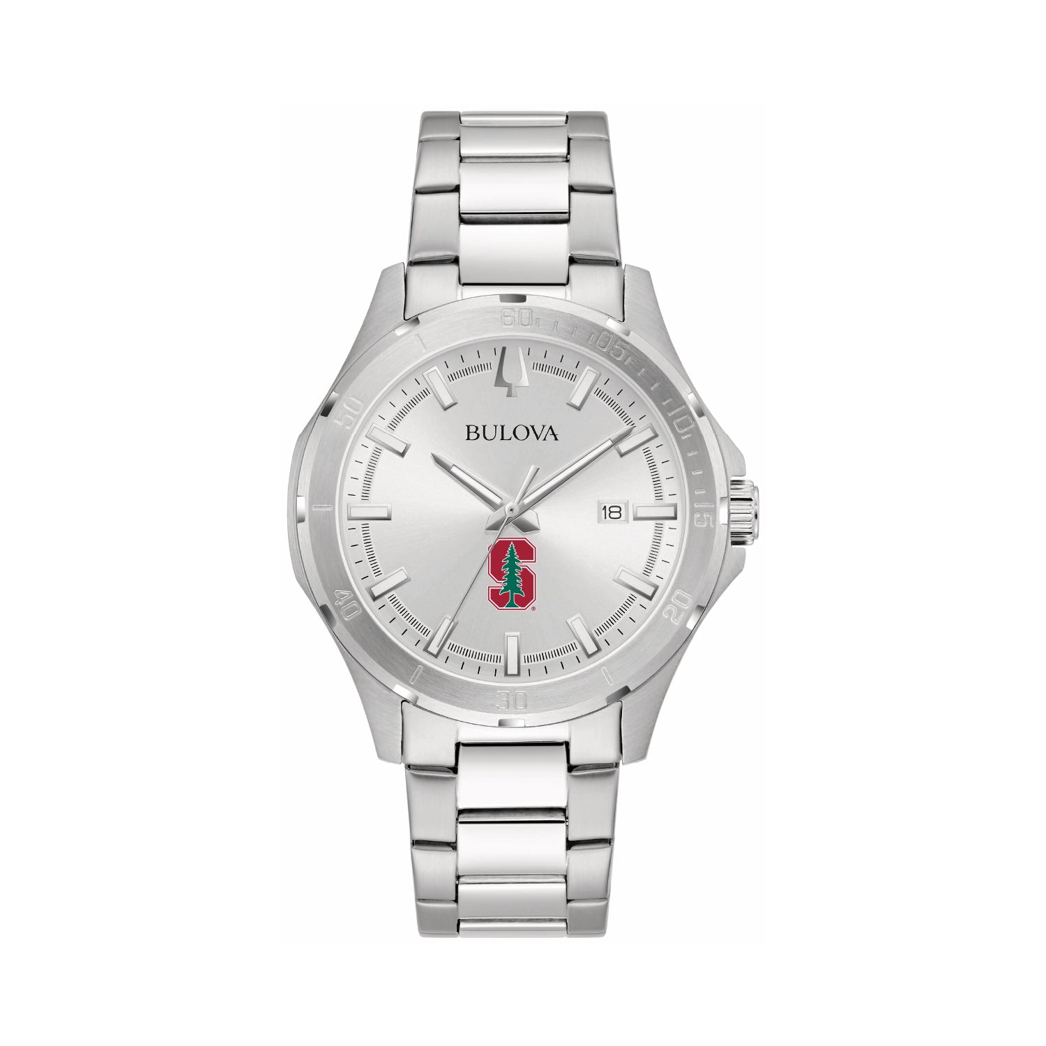 Bulova Silver Stanford Cardinal Stainless Steel Classic Sport Watch