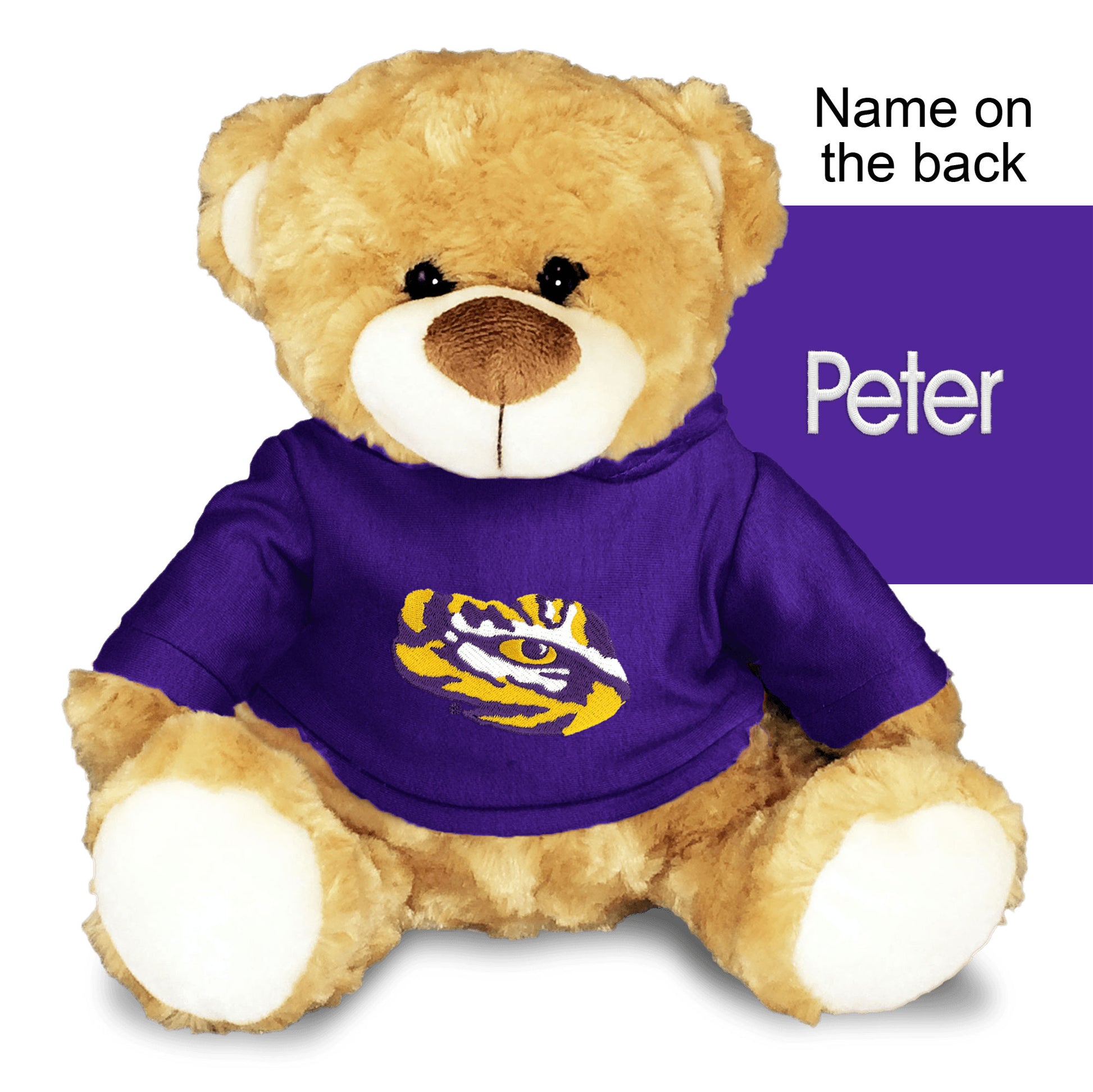 We want fans to celebrate their fandom by customizing and personalizing certain products. For these customizable products, including jerseys, we invite customers to tell us how they would like their preferred name or other text to appear by typing that text into the field indicated. However, just because a customer is able to type proposed customization text into the field and is able to complete the order through the website, not all proposed customization text will be accepted. Please note, Fanatics may reject and cancel any customization order for any reason, including for messages that are deemed offensive or inappropriate. Game days will be a whole lot softer with this LSU Tigers Personalized 10'' Plush Bear around. This soft bear rocks a top that features an embroidered LSU Tigers logo on the front and a custom name of your choice on the back. This toy is the perfect addition to a collection or toy for your young fan to play with.