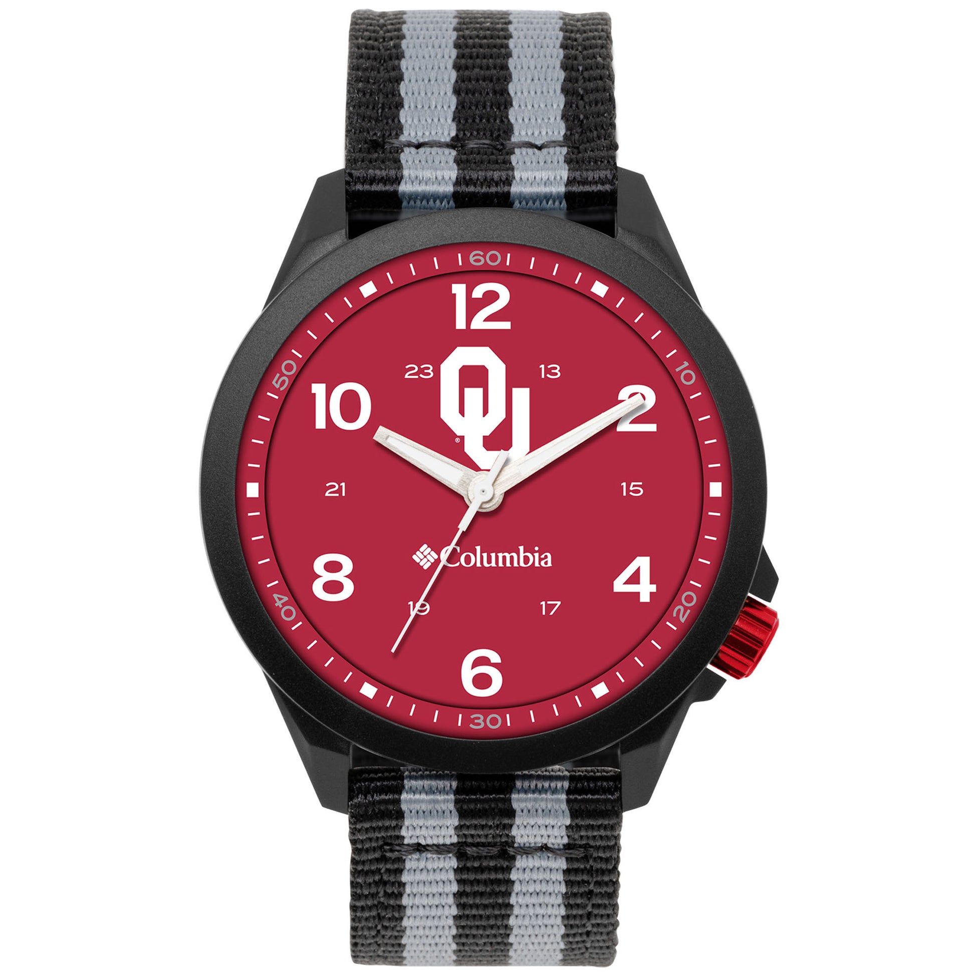 Wear your allegiance to the Oklahoma Sooners on your wrist. This Columbia Black Oklahoma Sooners Crestview 3-Hand Date Nylon Strap Watch features three hands, a 12-hour analog clock and a comfortable, vintage nylon strap. Show off your fandom with a timeless Oklahoma Sooners logo on this classic timepiece.
