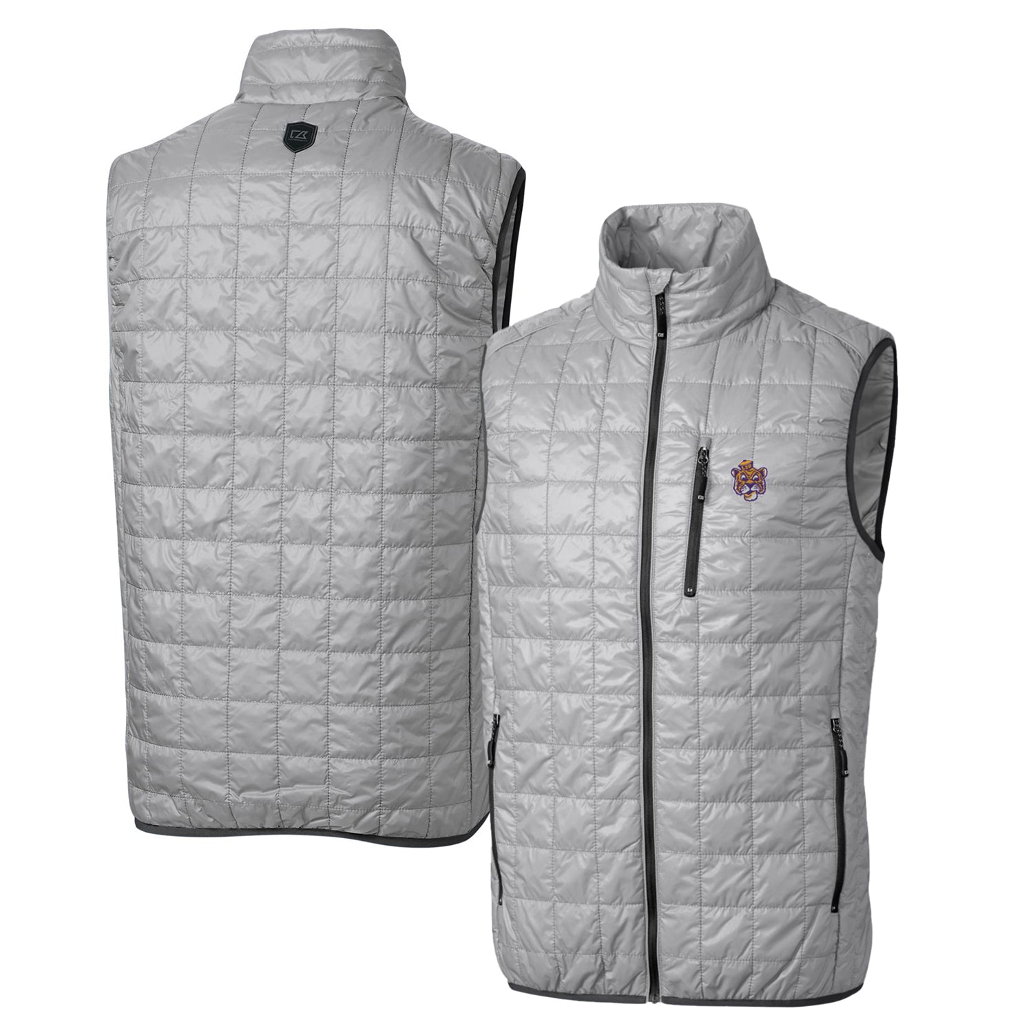 Cutter & Buck Gray LSU Tigers Primary Team Logo Rainier PrimaLoft Eco Insulated Full-Zip Puffer Vest