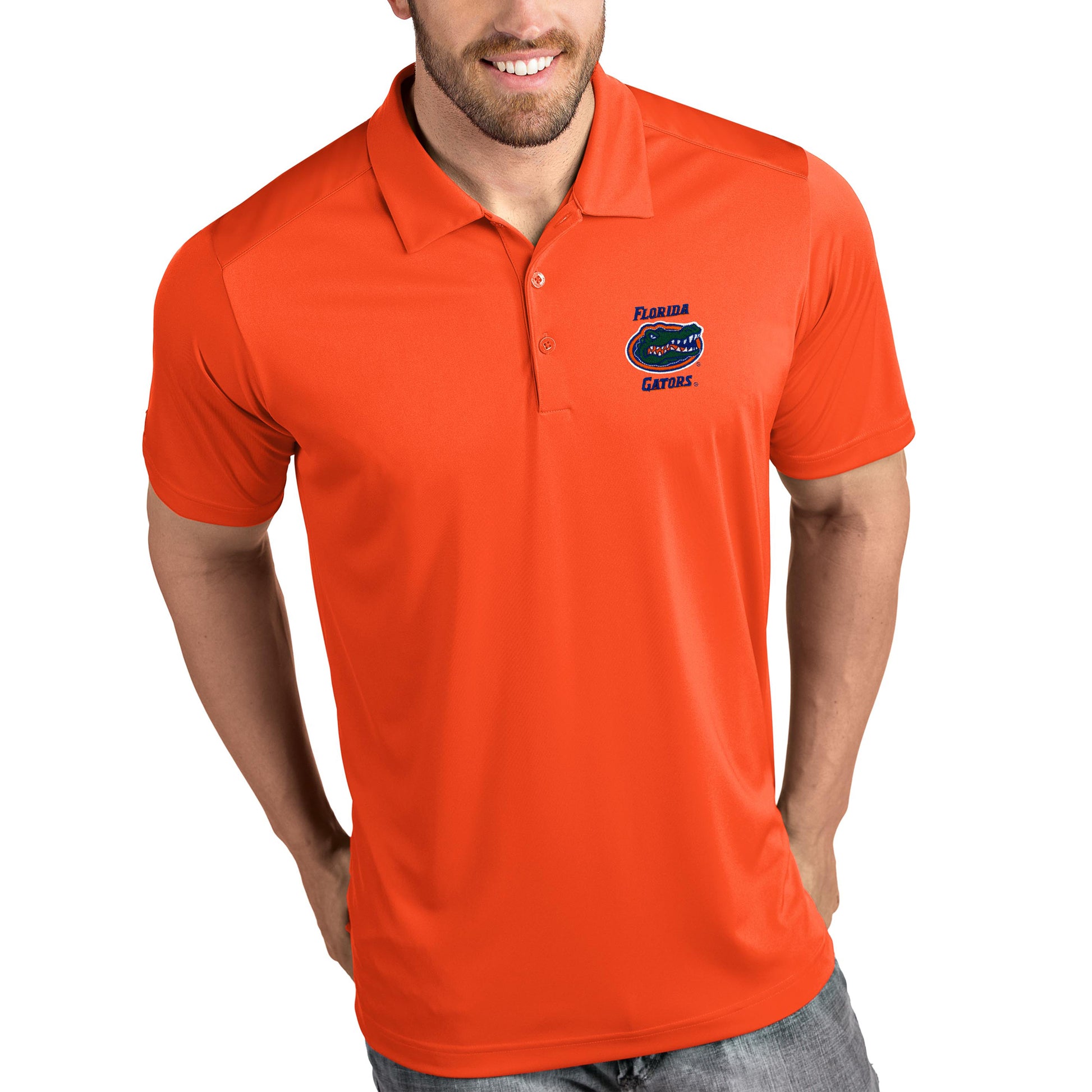 Embrace the spirit of the Florida Gators with the Florida Gators Antigua Tribute Polo. Crafted from breathable polyester, this polo keeps you comfortable while showcasing your unwavering support. Its vibrant orange hue and embroidered Gators logo proudly display your team spirit. Whether you're cheering from the stands or representing your team off the field, this polo embodies the passion and camaraderie that unites the Gator Nation.