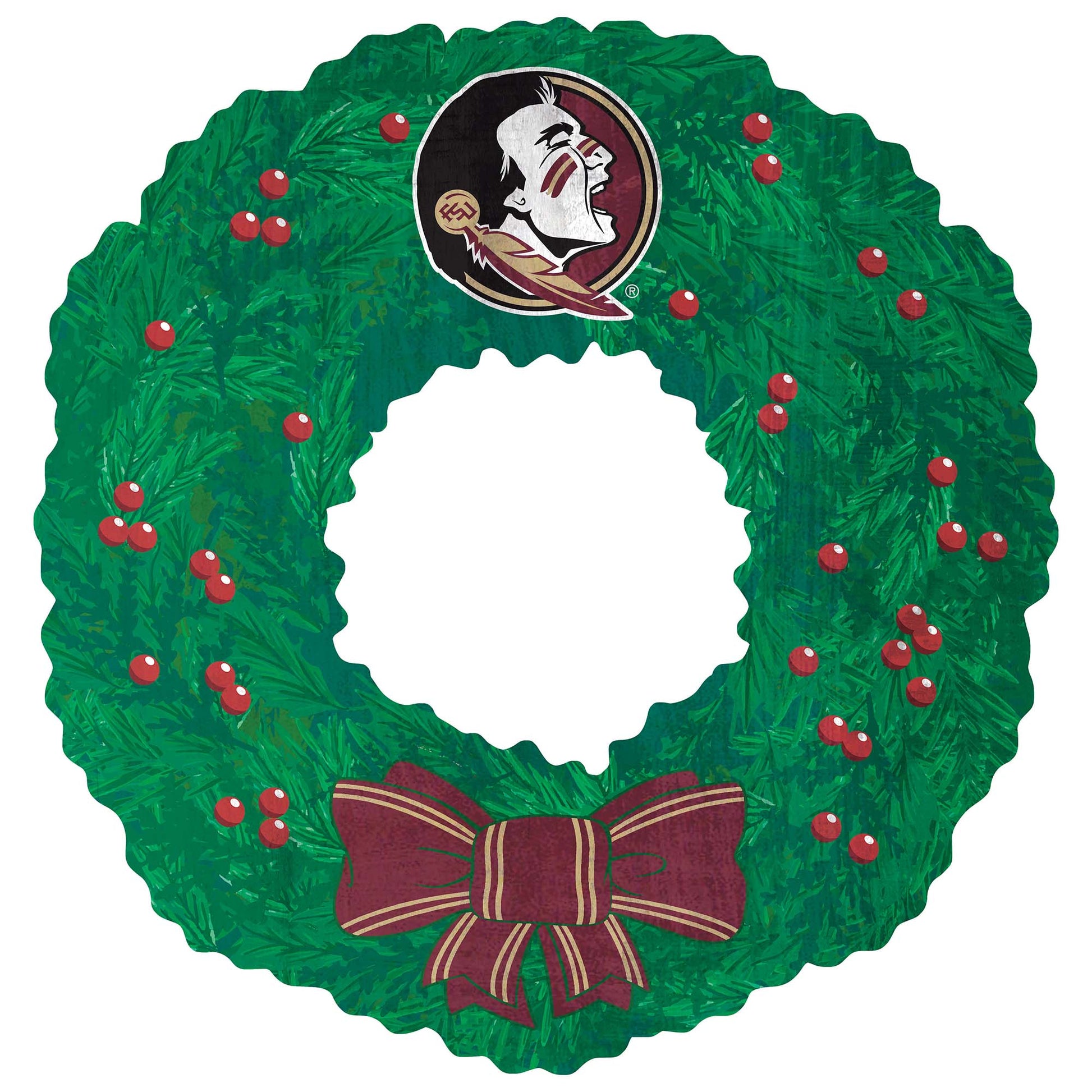 Add a touch of team spirit to your home during your favorite season with this Florida State Seminoles 16'' Team Wreath Sign. The medium-density fiberboard material resists cracking and warping over time, ensuring this festive piece lasts for years to come. The iconic Florida State Seminoles logo will let all visitors know where your allegiance lies.