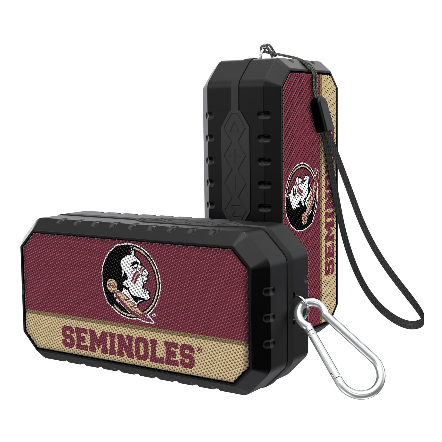 Take your music and podcasts with you everywhere you go with this Florida State Seminoles Primary Logo End Zone Water Resistant Bluetooth Speaker. It features bold Florida State Seminoles graphics and provides 4-6 hours of playtime. This spirited bluetooth speaker is water resistant, making it the perfect accessory for your next pool day or trip to the beach.