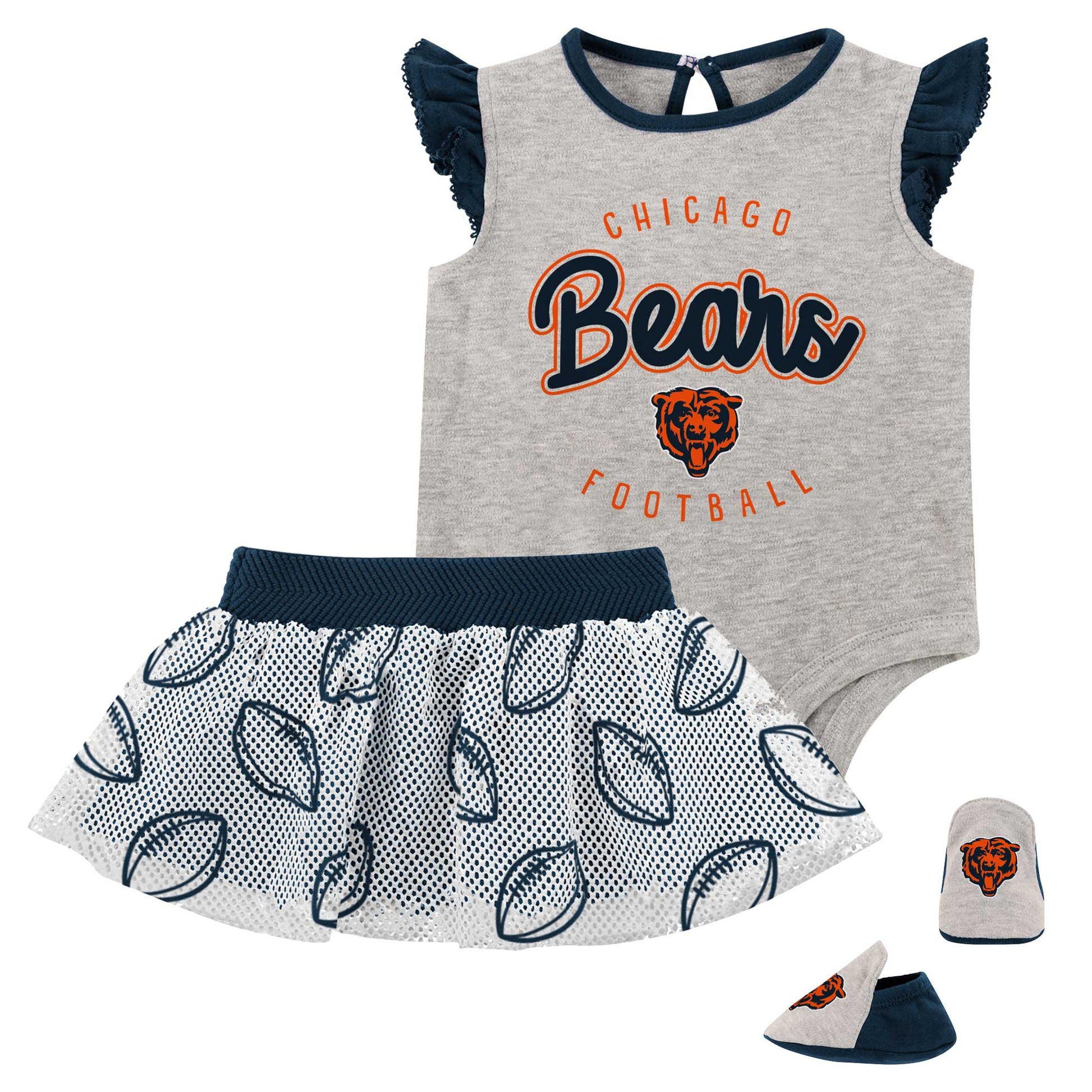 Girls Infant Heather Gray/Navy Chicago Bears All Dolled Up Three-Piece Bodysuit, Skirt & Booties Set