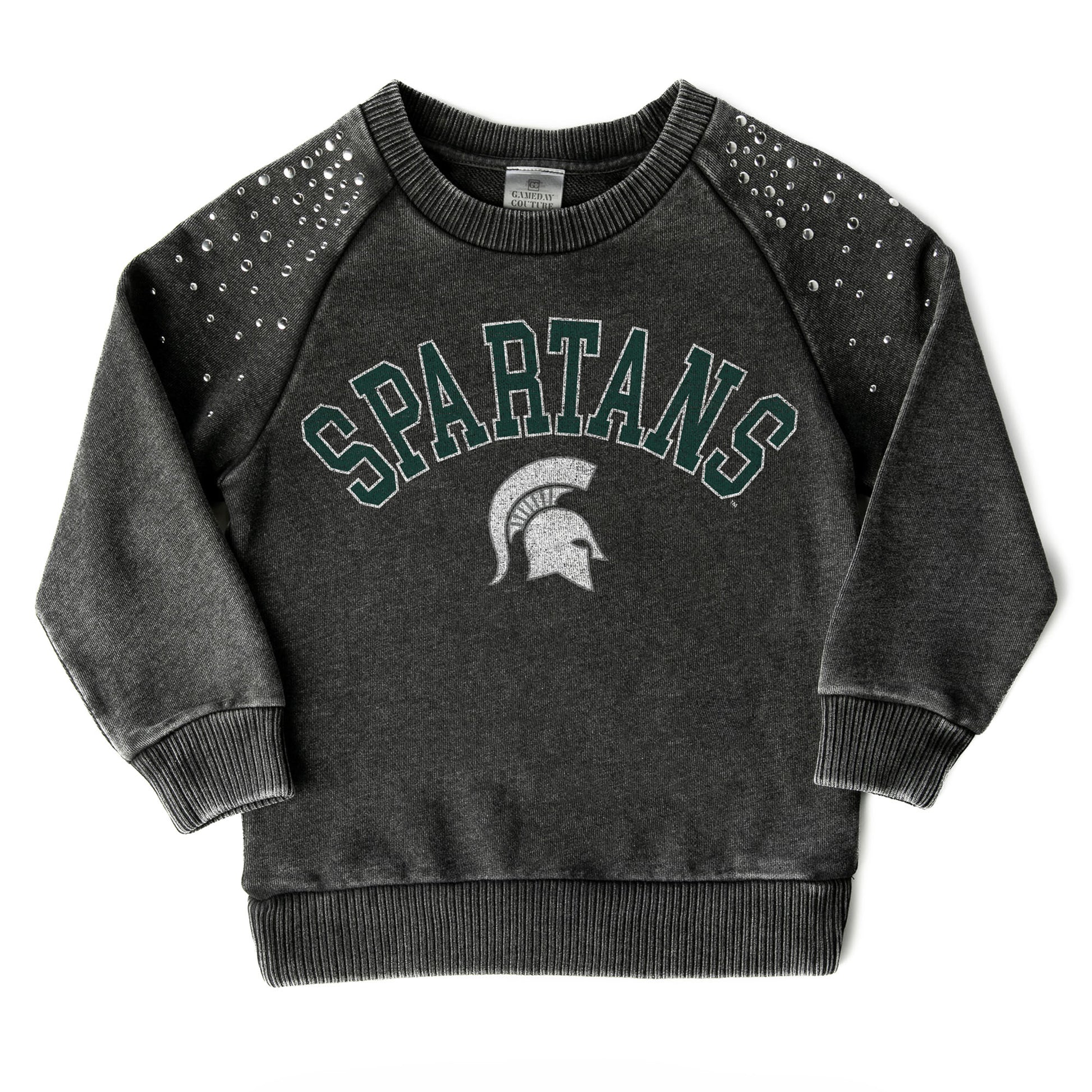 Girls Youth Gameday Couture Charcoal Michigan State Spartans Don't Blink Studded Long Sleeve T-Shirt