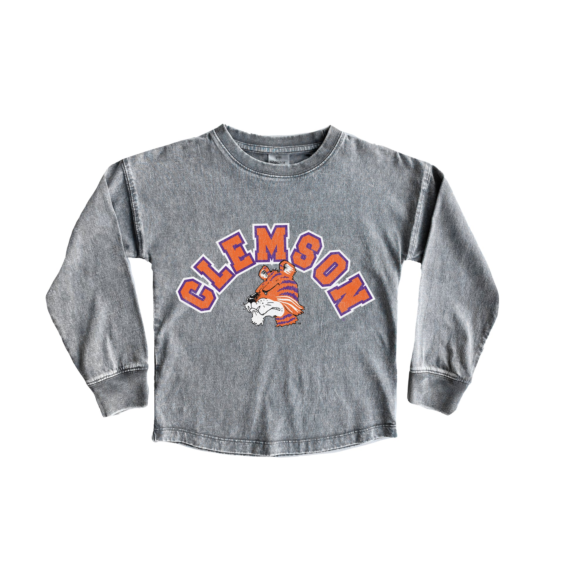 Girls Youth Gameday Couture Gray Clemson Tigers Faded Wash Pullover Top