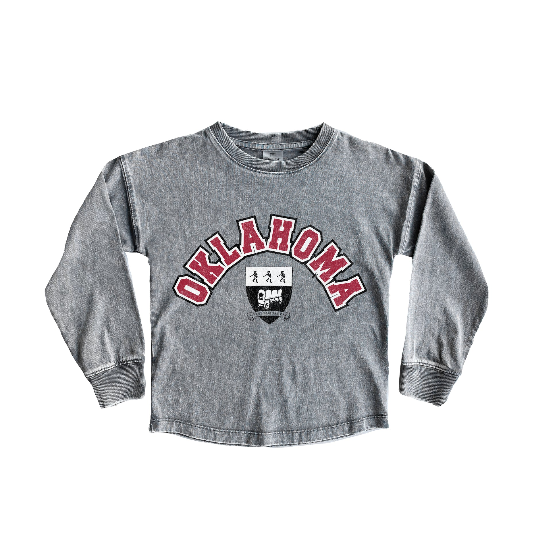 This Faded Wash Pullover Top from Gameday Couture is the perfect Oklahoma Sooners swag to give to your young fan! Not only are there iconic Oklahoma Sooners graphics on the front, but their distressed details give this top a vintage look and feel. This top is the perfect gear to showcase your kiddo's loyalty to their beloved team.