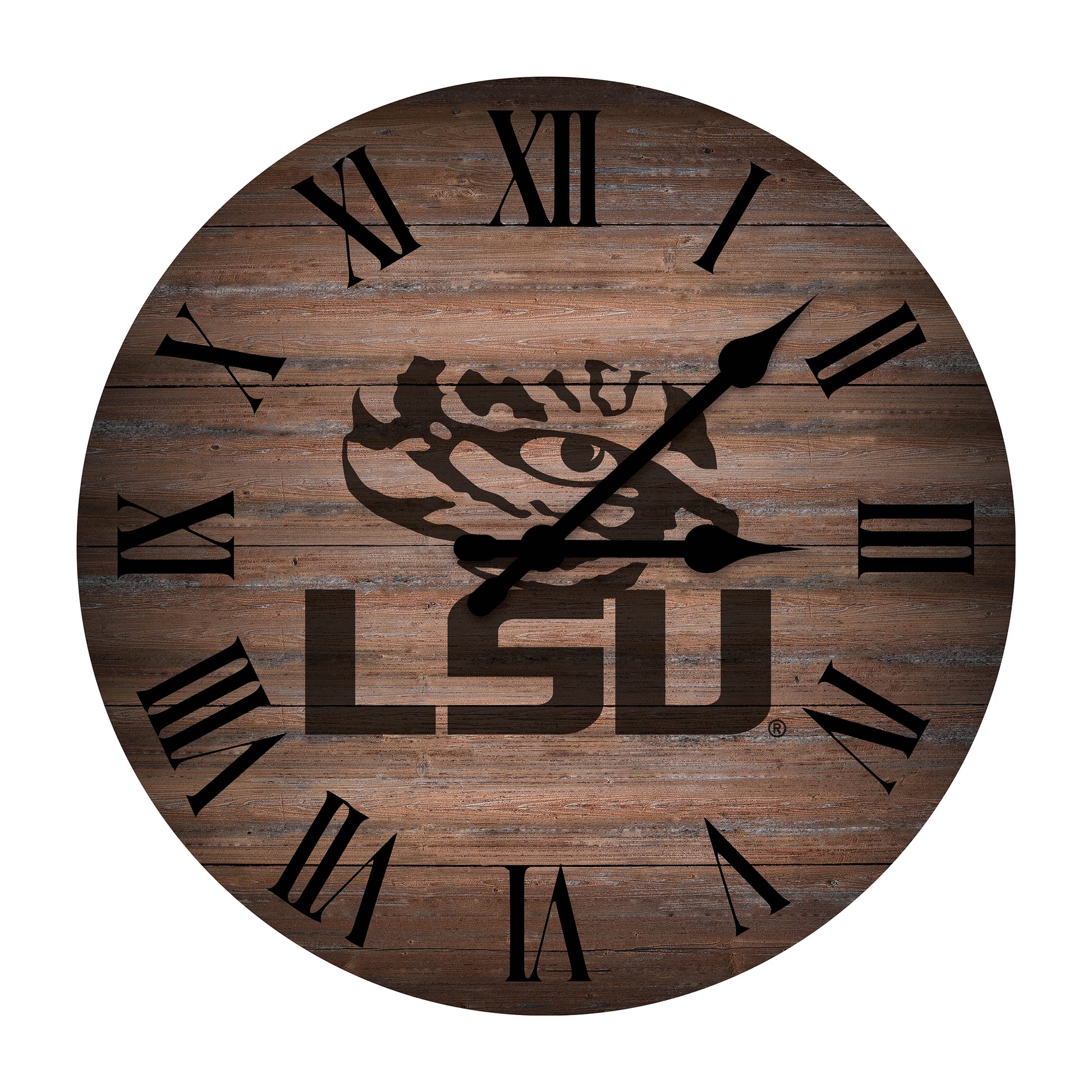 This Imperial Rustic 16'' Clock is perfect for any LSU Tigers fan. It features a rustic background and vintage-inspired hour and minute hands, giving it a unique look. Striking LSU Tigers graphics help add team spirit to any room and ensures you're always ready for game day.