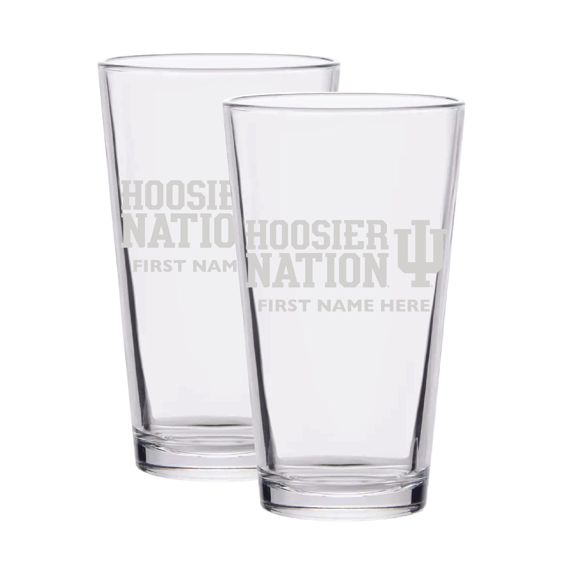 We want fans to celebrate their fandom by customizing and personalizing certain products. For these customizable products, including jerseys, we invite customers to tell us how they would like their preferred name or other text to appear by typing that text into the field indicated. However, just because a customer is able to type proposed customization text into the field and is able to complete the order through the website, not all proposed customization text will be accepted. Please note, Fanatics may reject and cancel any customization order for any reason, including for messages that are deemed offensive or inappropriate. Everyone will see that you're a big Indiana Hoosiers supporter when you use this Two-Pack 16oz. Personalized Etched Team Pint Glass for your favorite drink. This glass features crisp etched graphics that will showcase your love for the Indiana Hoosiers anytime with its sleek design. This drinkware is the perfect accessory on game days or every day.