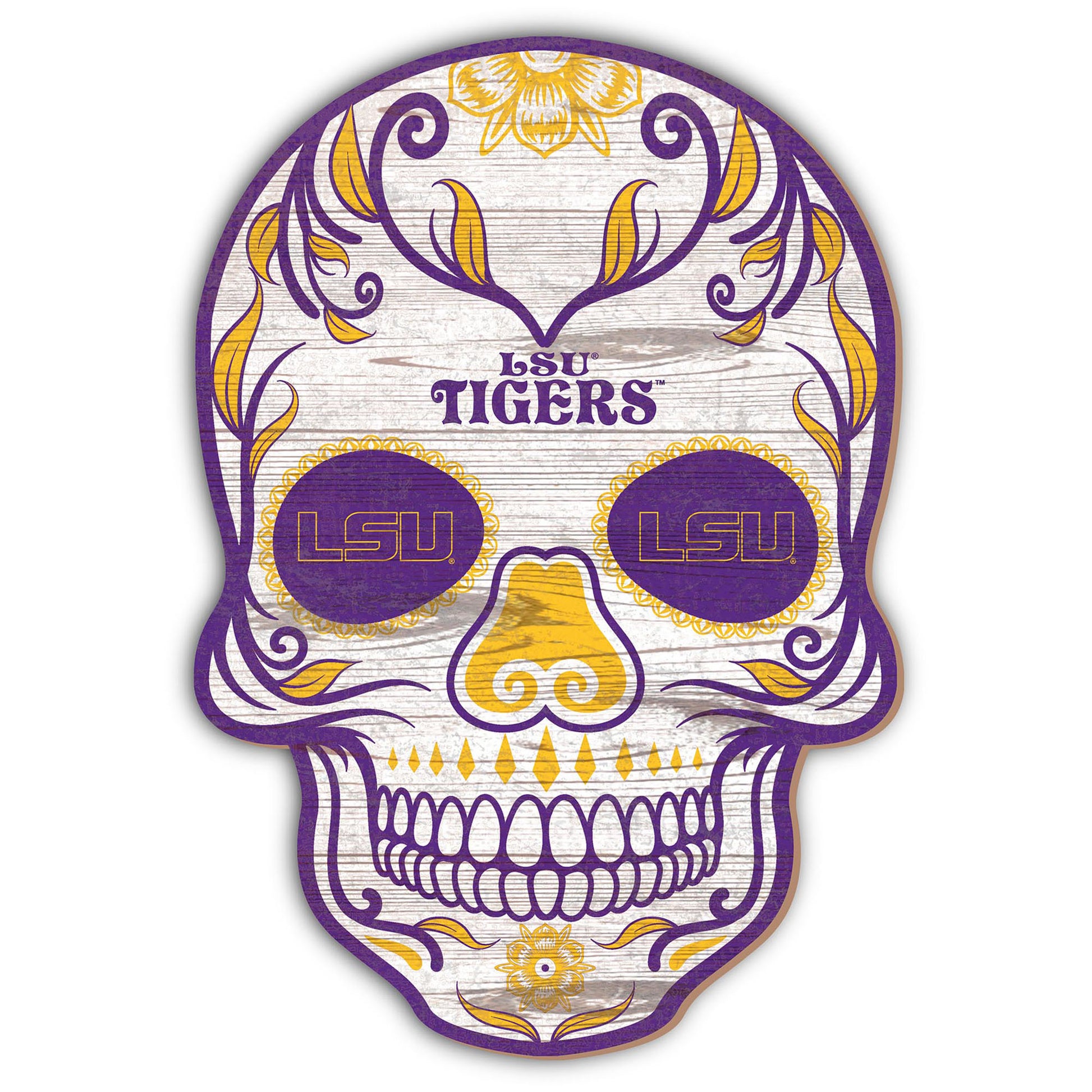 This Dia de los Muertos themed 12'' Sugar Skull Sign features the iconic LSU Tigers logo and colors. The 100% MDF wood cutout includes brackets, making it ready to hang out of the box. Fill your next holiday party with LSU Tigers spirit with this stunning Sugar Skull Sign.