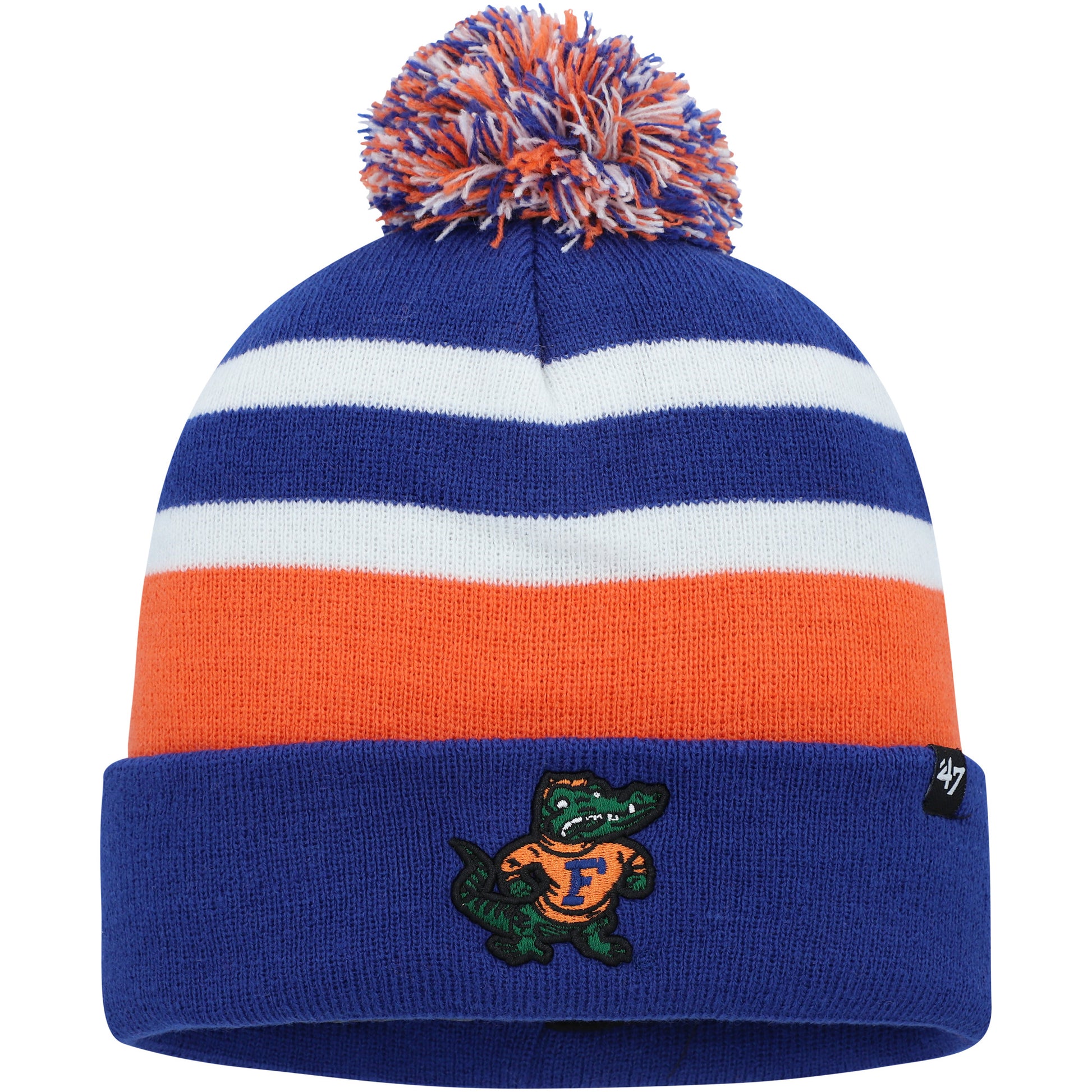 Keep your noggin warm and enjoy a boost of Florida Gators spirit each time you reach for this bold State Line cuffed knit hat from '47. It features an embroidered Florida Gators graphic on the cuff and a striped design that offers an understated look fit for game day. Plus, the fun pom on top provides a jovial spin on your showing of team pride.