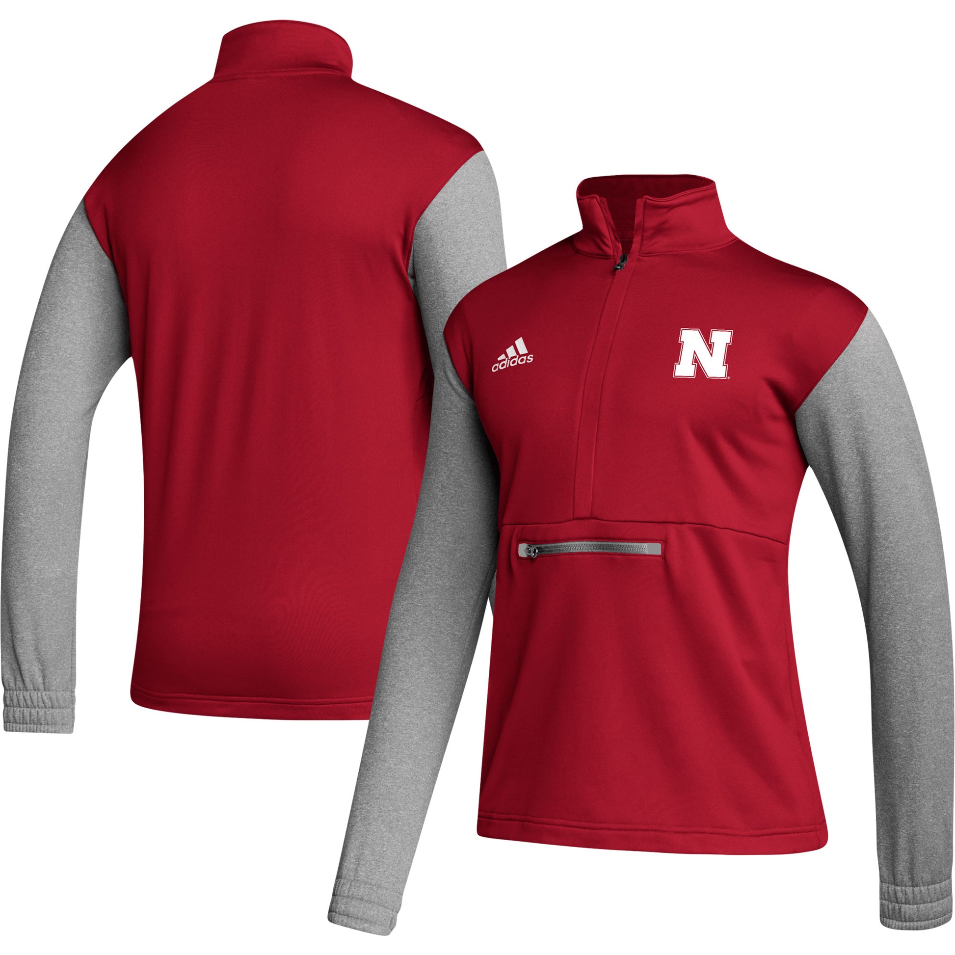 Men's adidas Scarlet/Heathered Gray Nebraska Huskers Team AEROREADY Half-Zip Top
