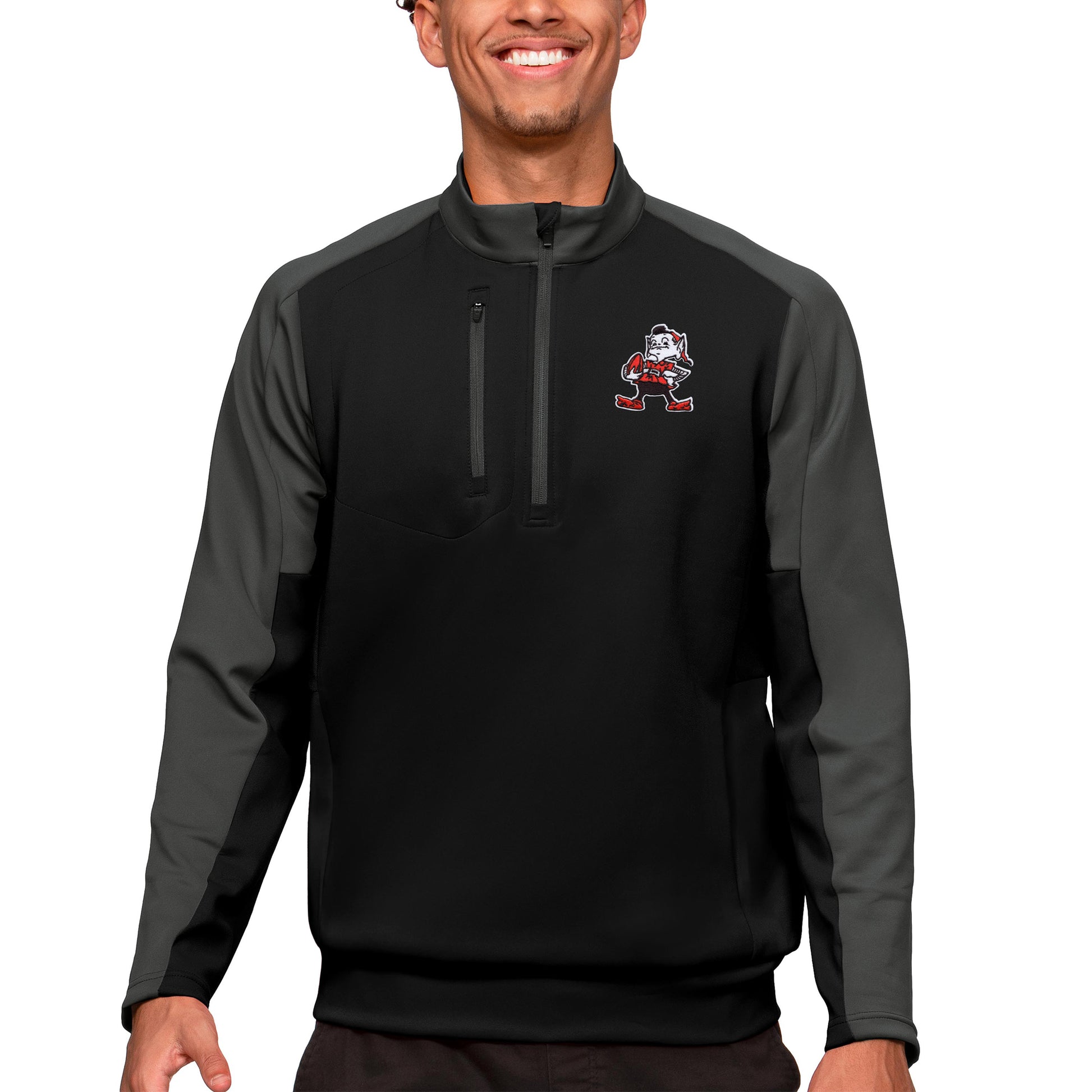 Men's Antigua Black Cleveland Browns Team Quarter-Zip Pullover Top