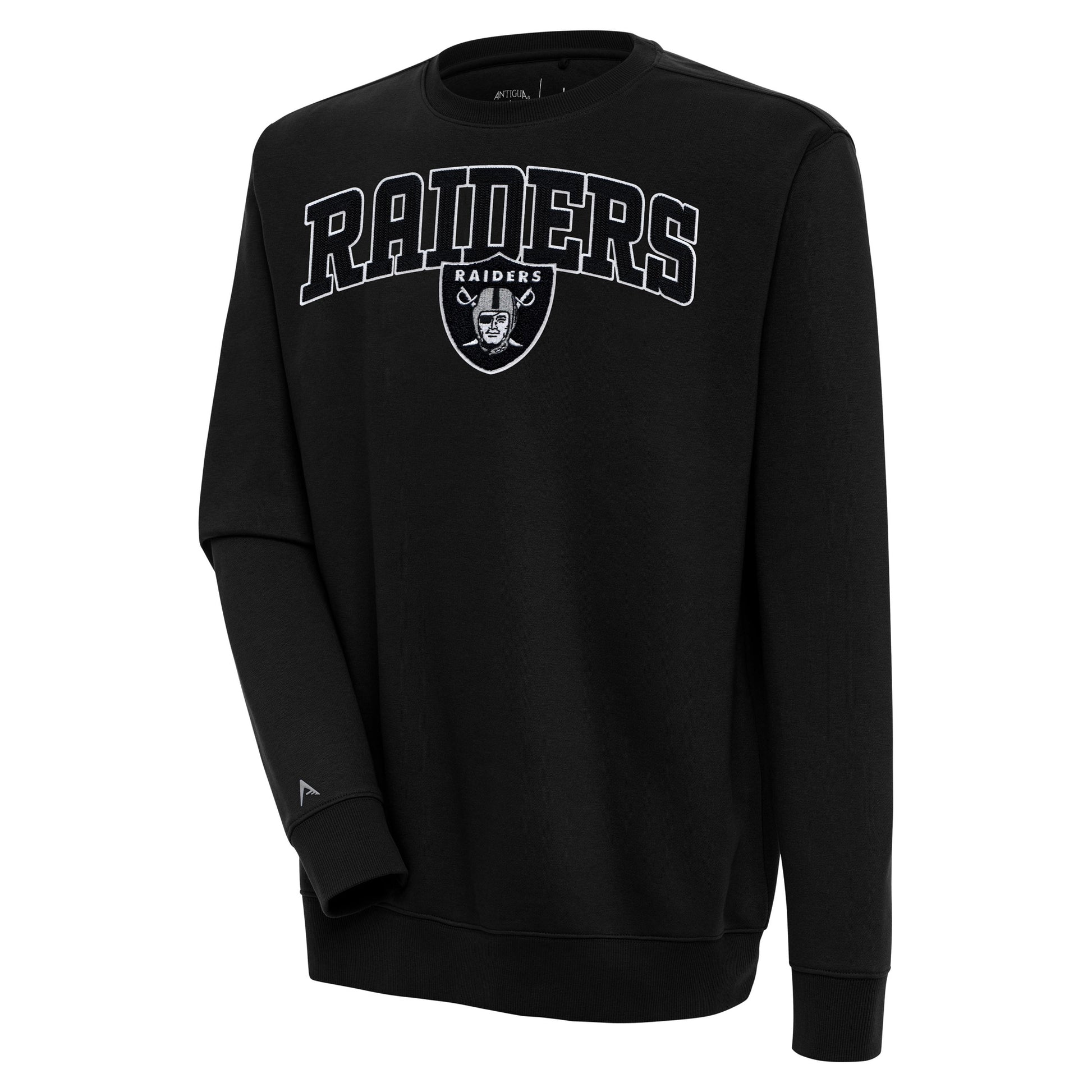 The Men's Antigua Black Las Vegas Raiders Victory Chenille Pullover Sweatshirt is the ultimate way to show unwavering support for the Las Vegas Raiders. Crafted from a soft cotton and polyester blend, this midweight sweatshirt ensures comfort and warmth during chilly game days. The heat-sealed chenille patch proudly displays the Raiders logo, while the brushed back fleece provides extra coziness. Whether cheering from the stands or showcasing team spirit, this sweatshirt represents the Las Vegas Raiders in style.