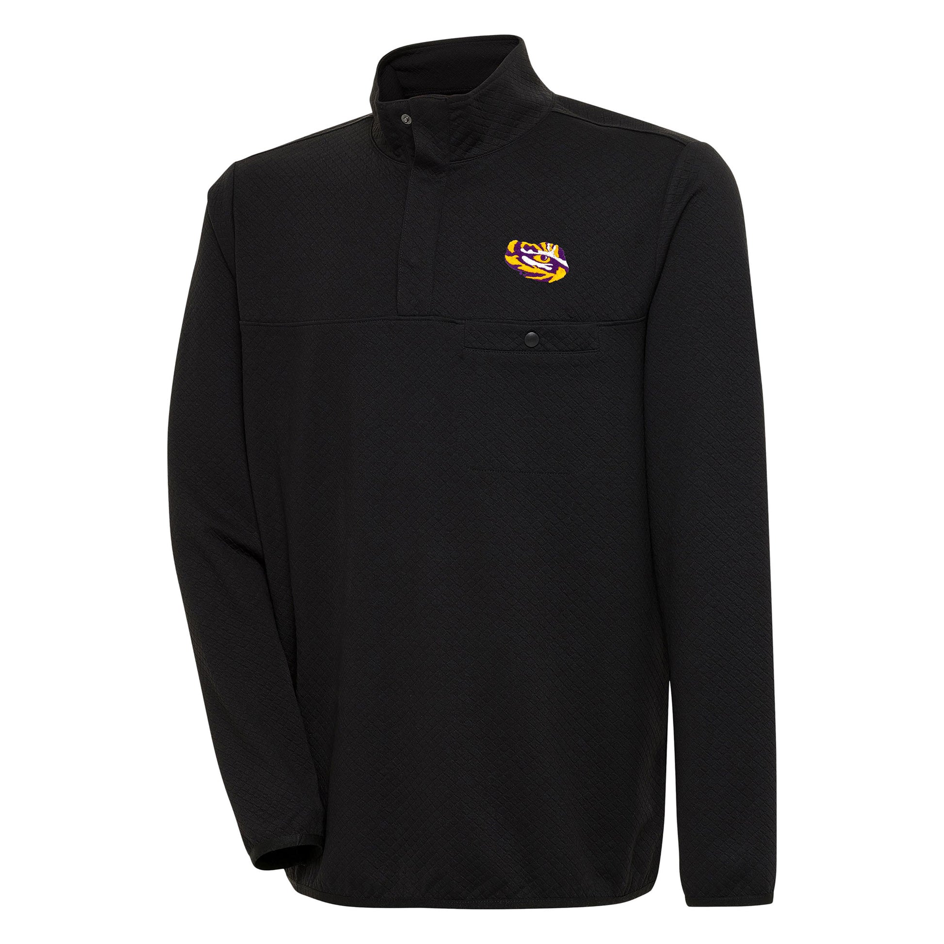 Show your LSU Tigers spirit in style with this Antigua Steamer Quarter-Snap Pullover Jacket. This midweight pullover features heat-sealed LSU Tigers graphics and a diamond texture fabric for a stylish and comfortable game day look. Whether you're cheering on the Tigers at Death Valley or just relaxing at home, this pullover is the perfect way to show your team spirit.