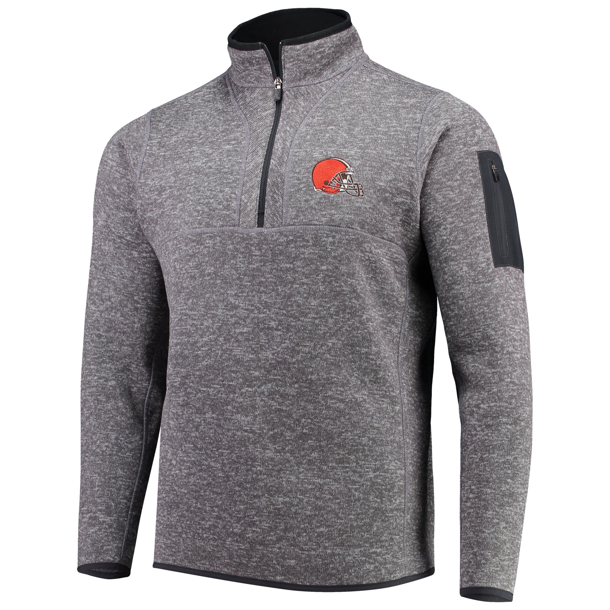 Men's Antigua Charcoal Cleveland Browns Fortune Quarter-Zip Pullover Jacket