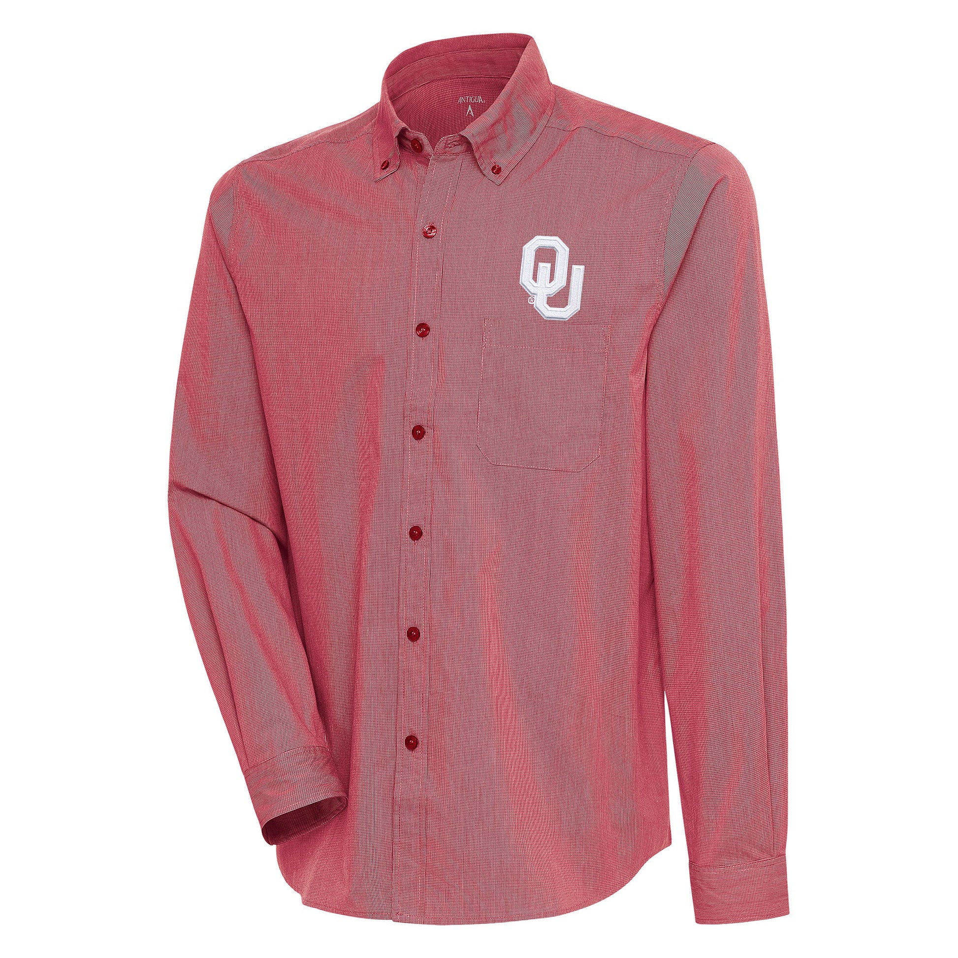Men's Antigua Crimson/White Oklahoma Sooners Compression Long Sleeve Button-Down Shirt