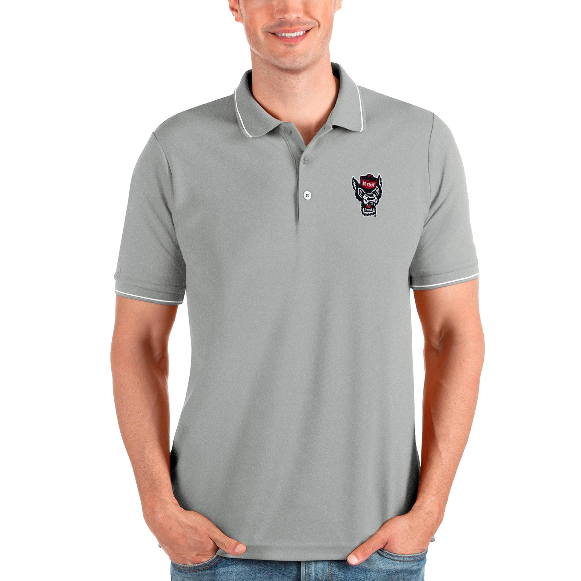 Men's Antigua Gray NC State Wolfpack Affluent Polo