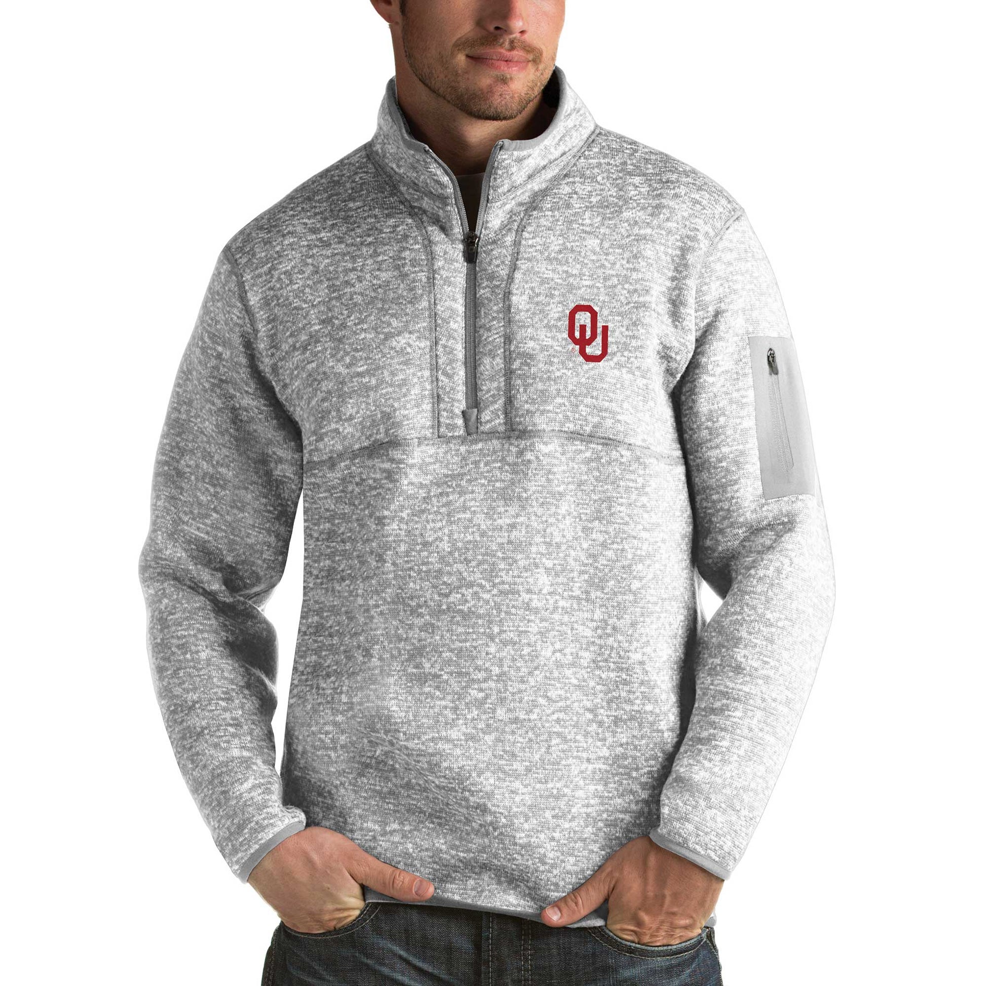 Men's Antigua Gray Oklahoma Sooners Fortune Half-Zip Sweatshirt