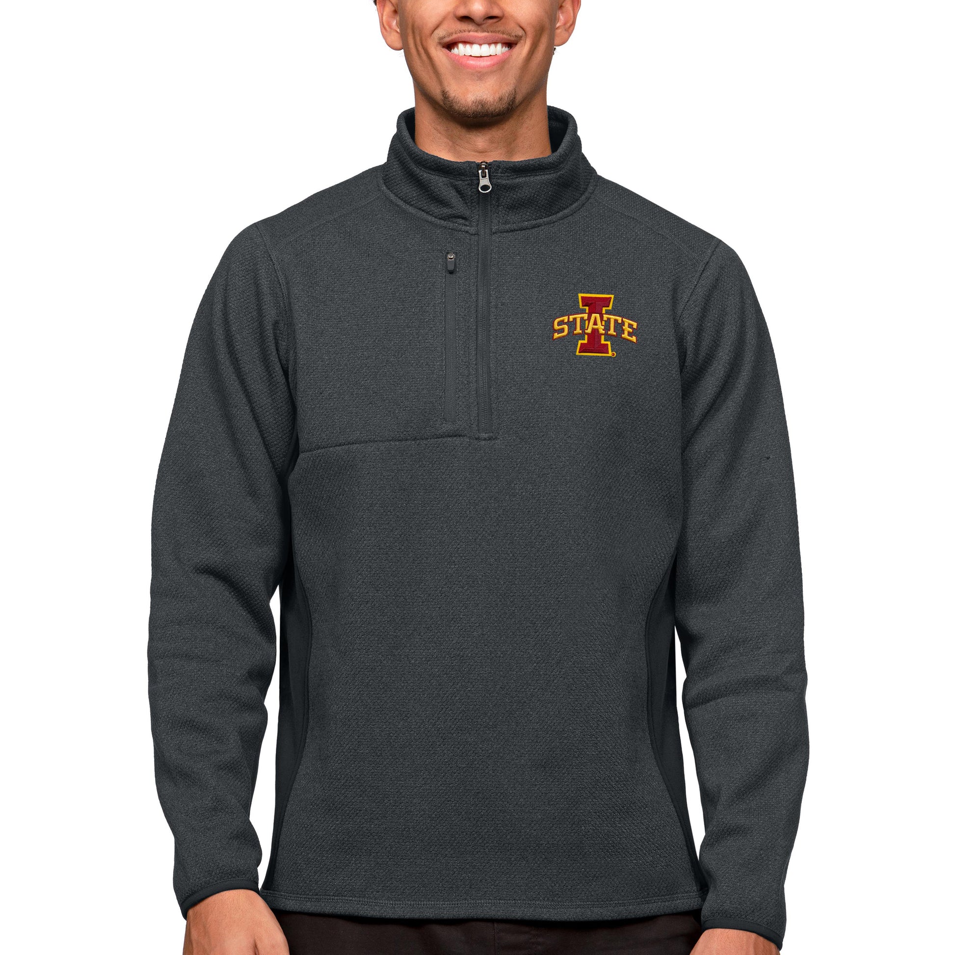 Men's Antigua Heather Charcoal Iowa State Cyclones Course Quarter-Zip Pullover Top