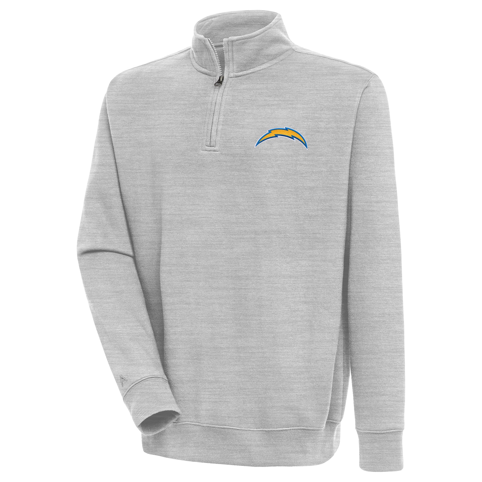 Men's Antigua Heather Gray Los Angeles Chargers Victory Quarter-Zip Pullover Top