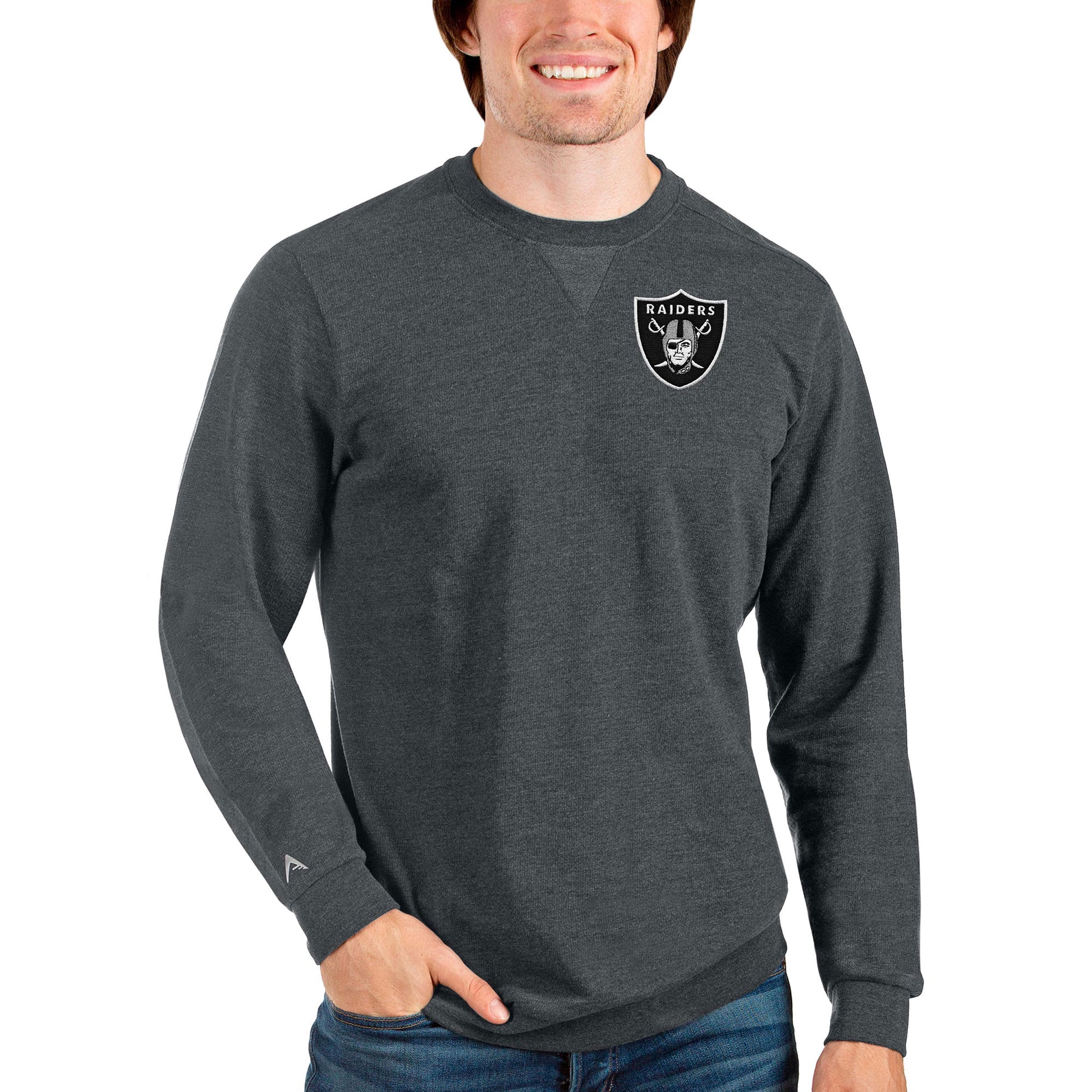 Men's Antigua Heathered Charcoal Las Vegas Raiders Reward Crewneck Pullover Sweatshirt