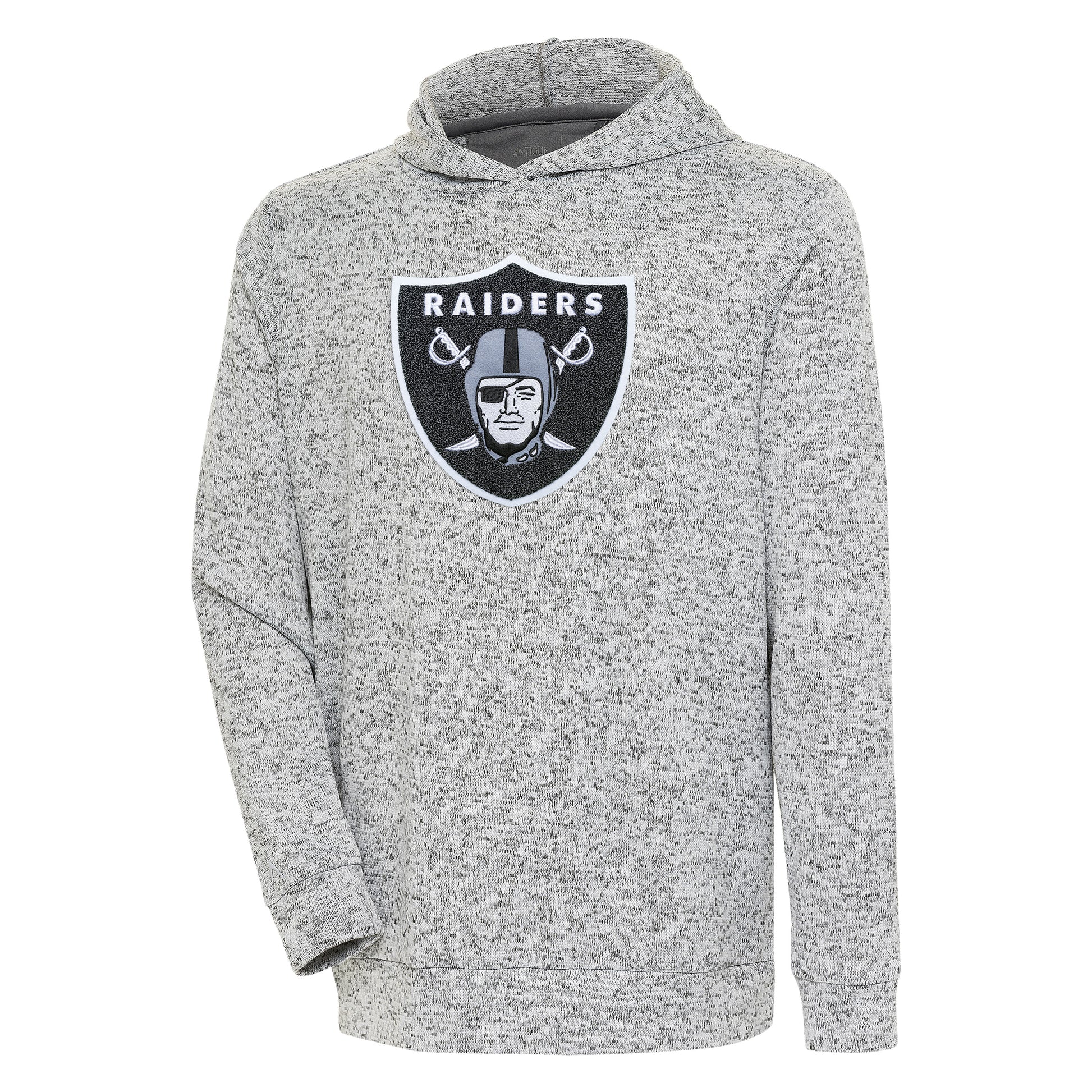 Men's Antigua Heathered Gray Las Vegas Raiders Absolute Chenille Pullover Hoodie