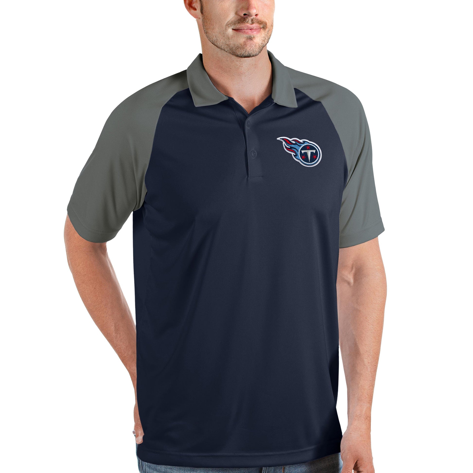 The Men's Antigua Navy/Steel Tennessee Titans Nova Polo is a stylish and comfortable choice for any Titans fan. Embroidered graphics and raglan sleeves add sophistication, while the self-fabric collar and side hem splits provide a relaxed fit. Durable polyester construction makes this polo perfect for showing support for the Tennessee Titans both on and off the field.