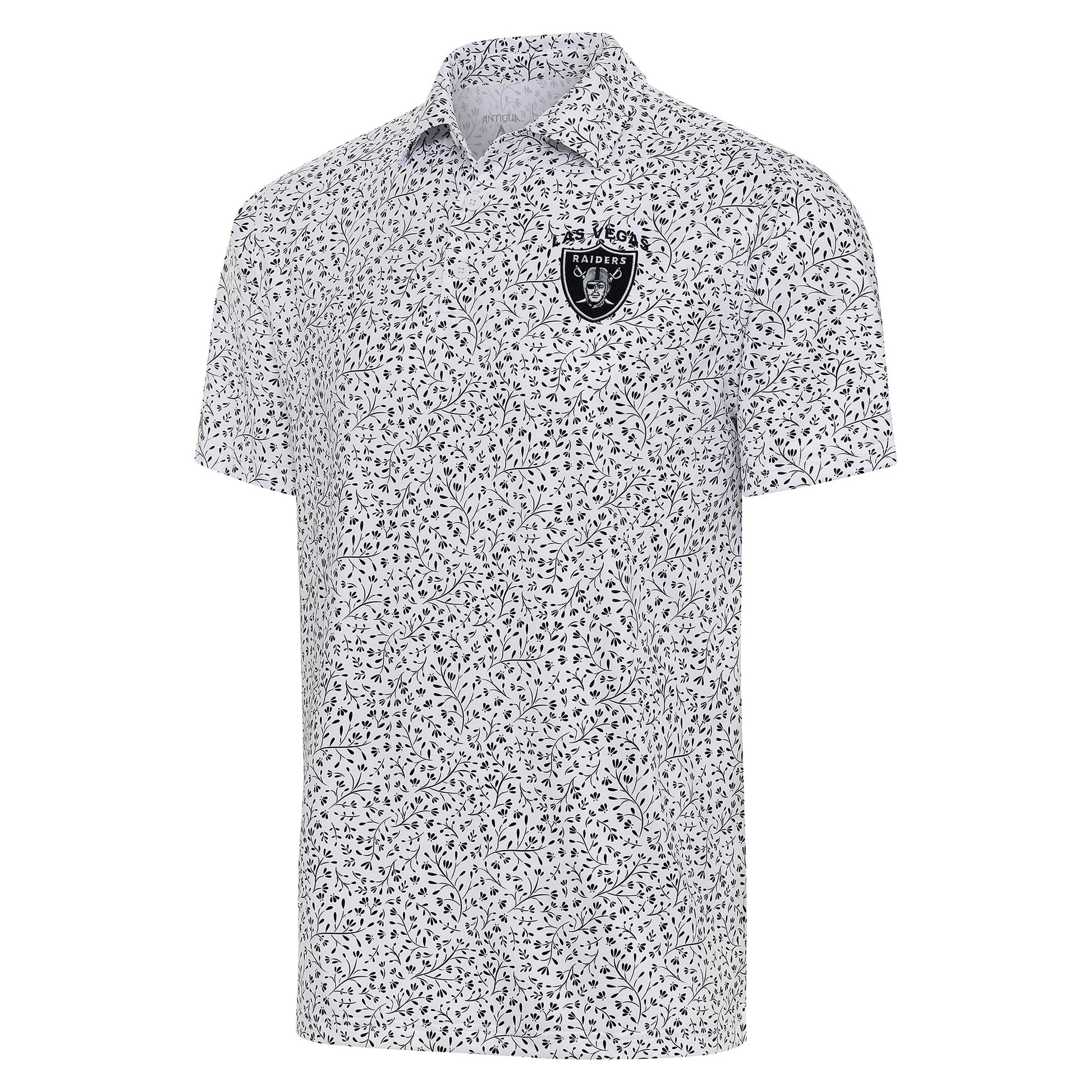 Step into the Las Vegas Raiders' vibrant spirit with the Men's Antigua White/Black Las Vegas Raiders Motion Polo. This stylish polo boasts an eye-catching sublimated floral pattern, a nod to the team's unique identity. Its embroidered Las Vegas Raiders patch and three-button placket add a touch of sophistication, while the side vents and self-fabric collar ensure a comfortable fit. Whether you're cheering on your team at the stadium or representing their spirit in everyday life, this polo seamlessly blends style and passion, making it the perfect choice for any Las Vegas Raiders enthusiast.