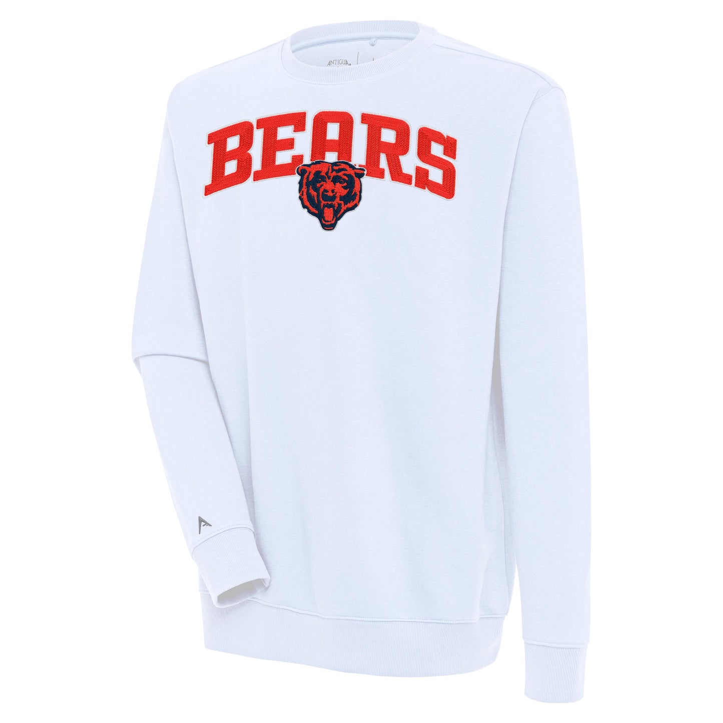 Men's Antigua White Chicago Bears Victory Chenille Pullover Sweatshirt