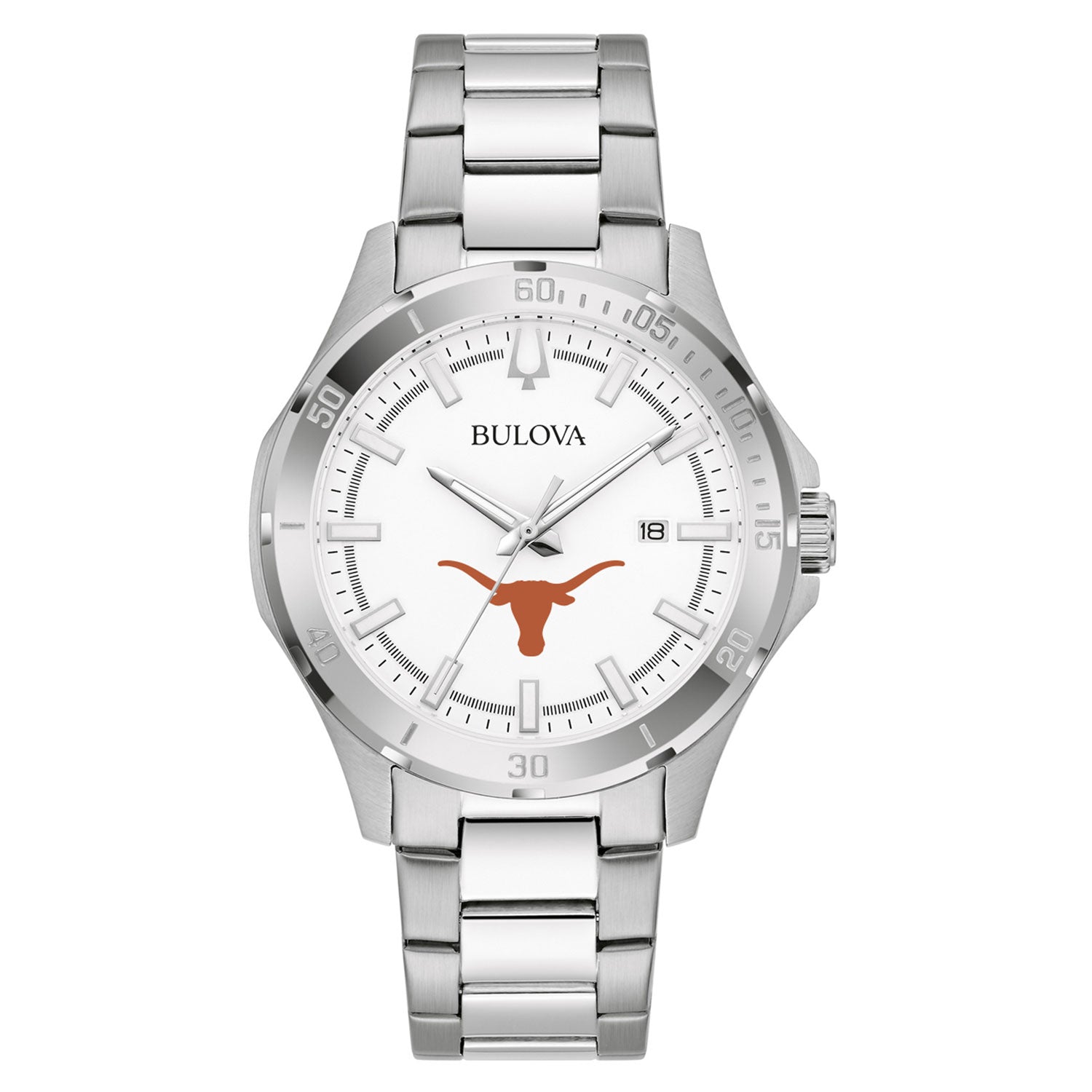 Add some team spirit to your watch collection with this Stainless Steel Classic Sport Watch from Bulova. The sleek and stylish stainless steel makes it easy to pair with any outfit. Accented with printed Texas Longhorns graphics, it brings the perfect amount of fandom to every outfit.