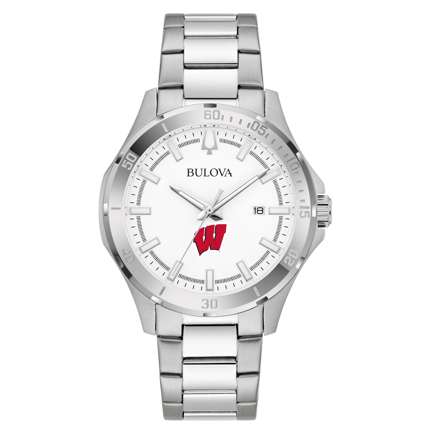 Add some team spirit to your watch collection with this Stainless Steel Classic Sport Watch from Bulova. The sleek and stylish stainless steel makes it easy to pair with any outfit. Accented with printed Wisconsin Badgers graphics, it brings the perfect amount of fandom to every outfit.