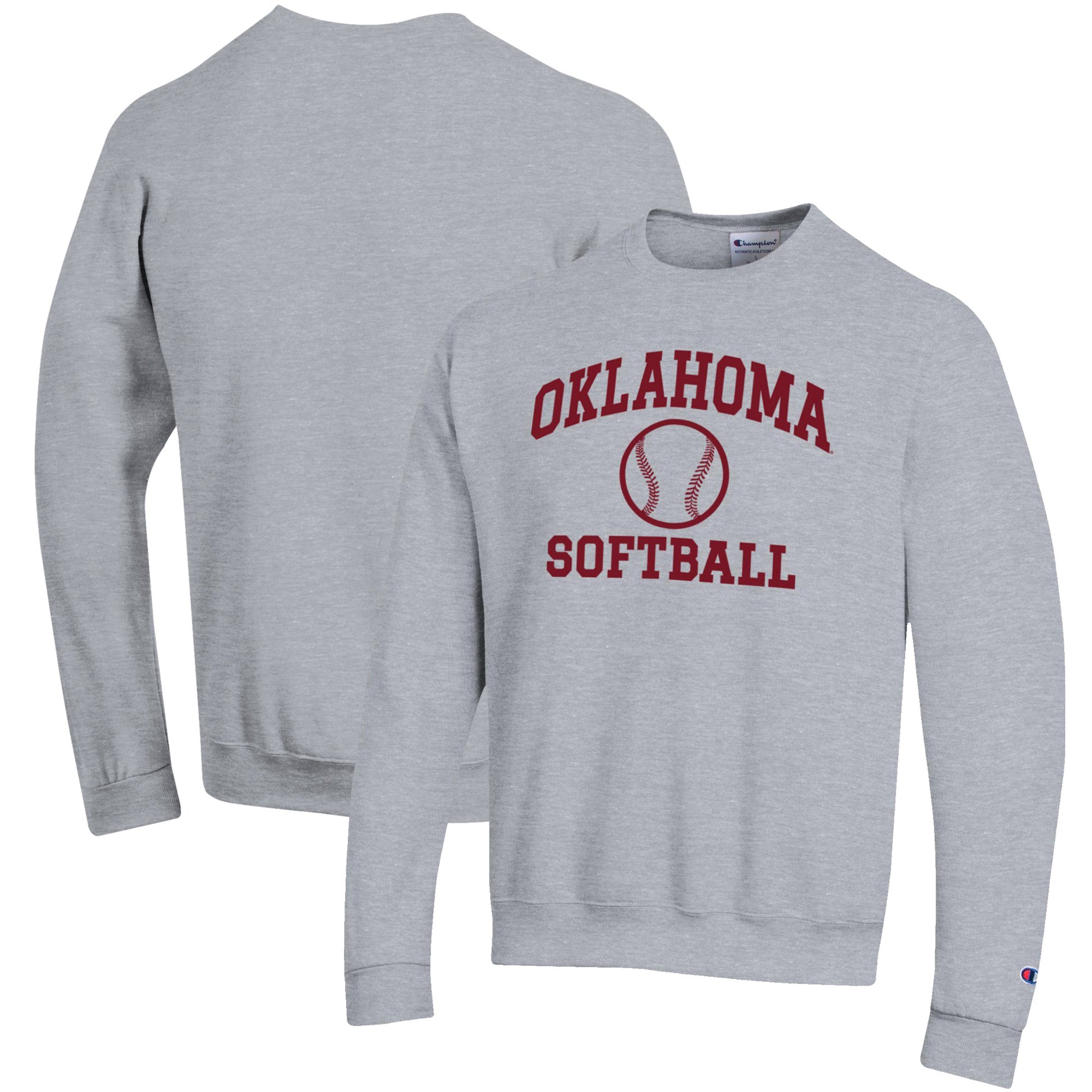 Men's Champion Gray Oklahoma Sooners Softball Icon Crewneck Pullover Sweatshirt
