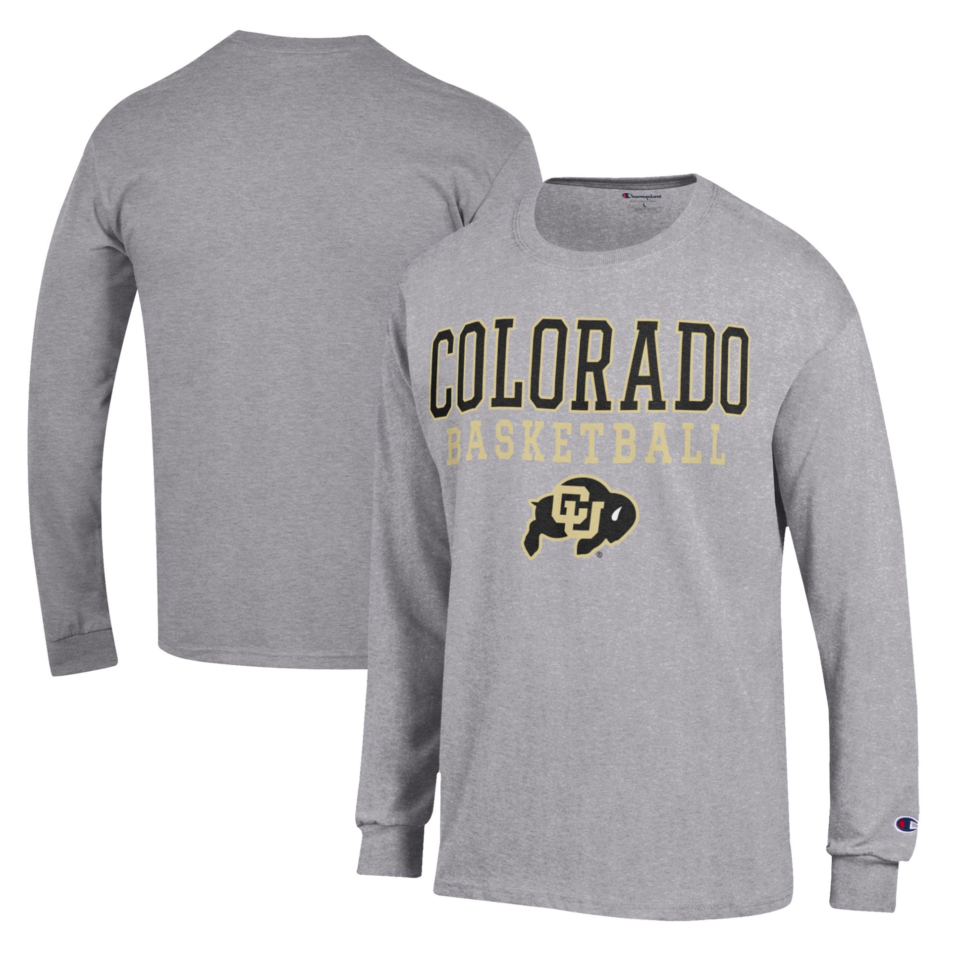The Champion Heather Gray Colorado Buffaloes Basketball Stack Long Sleeve T-Shirt is the perfect way to show your support for the Buffaloes. Made from soft cotton, this shirt features a crew neck, rib-knit cuffs, and a tagless back for added comfort. Bold Colorado Buffaloes graphics on the front and back let everyone know who you're rooting for. Whether you're cheering on the Buffaloes at the game or showing support around town, this shirt is a must-have for any fan.