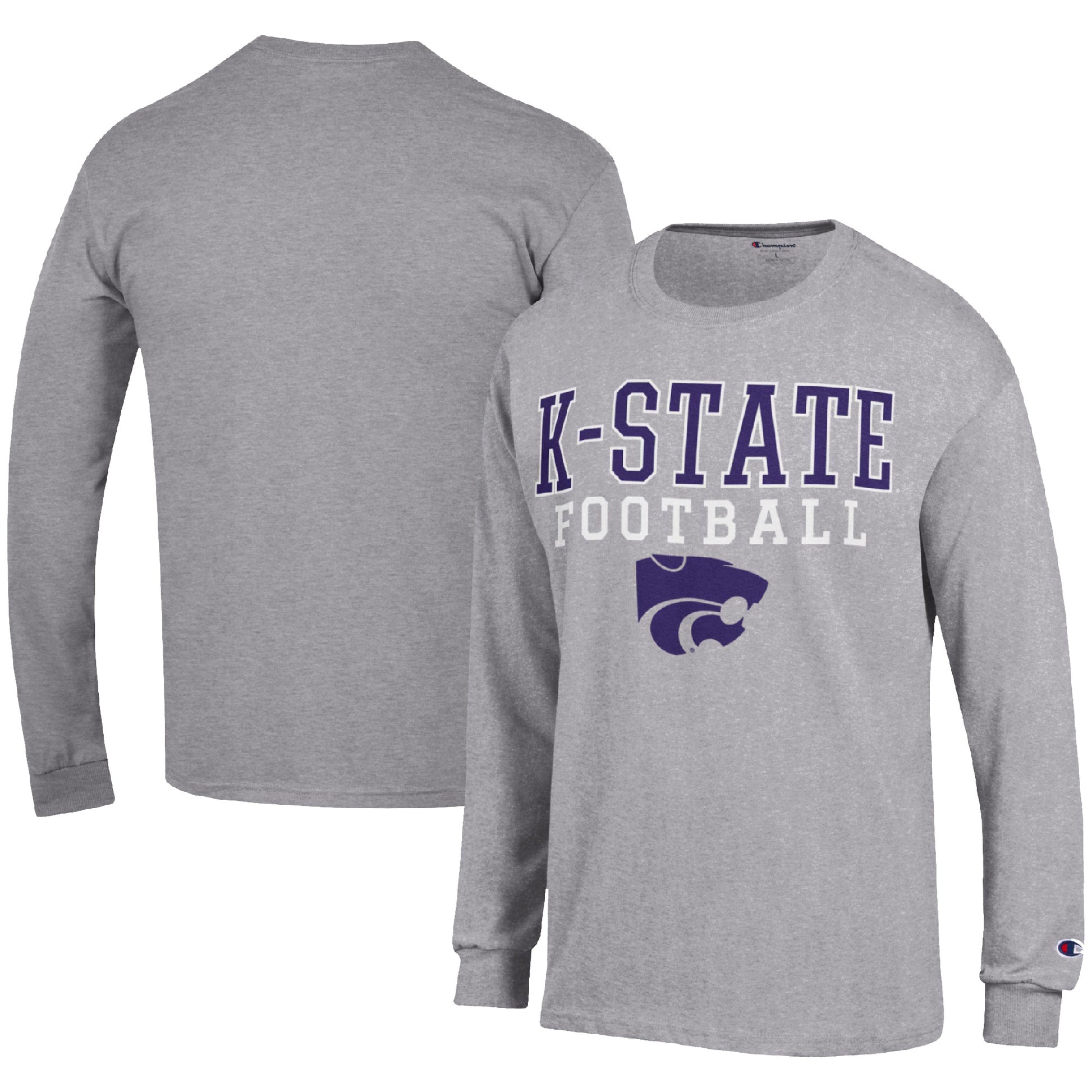 Men's Champion Heather Gray Kansas State Wildcats Football Stack Long Sleeve T-Shirt