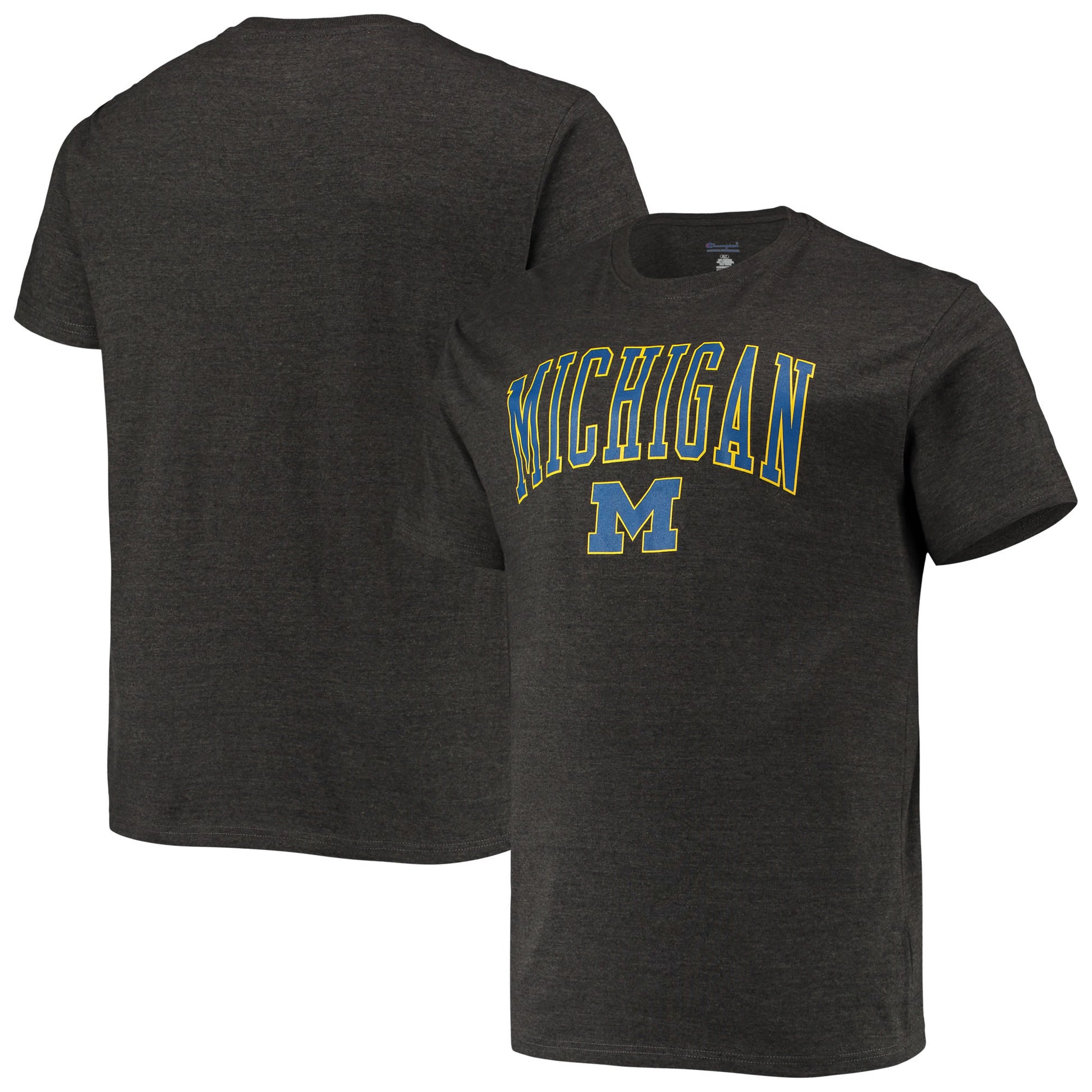 Men's Champion Heathered Charcoal Michigan Wolverines Big & Tall Arch Over Wordmark T-Shirt