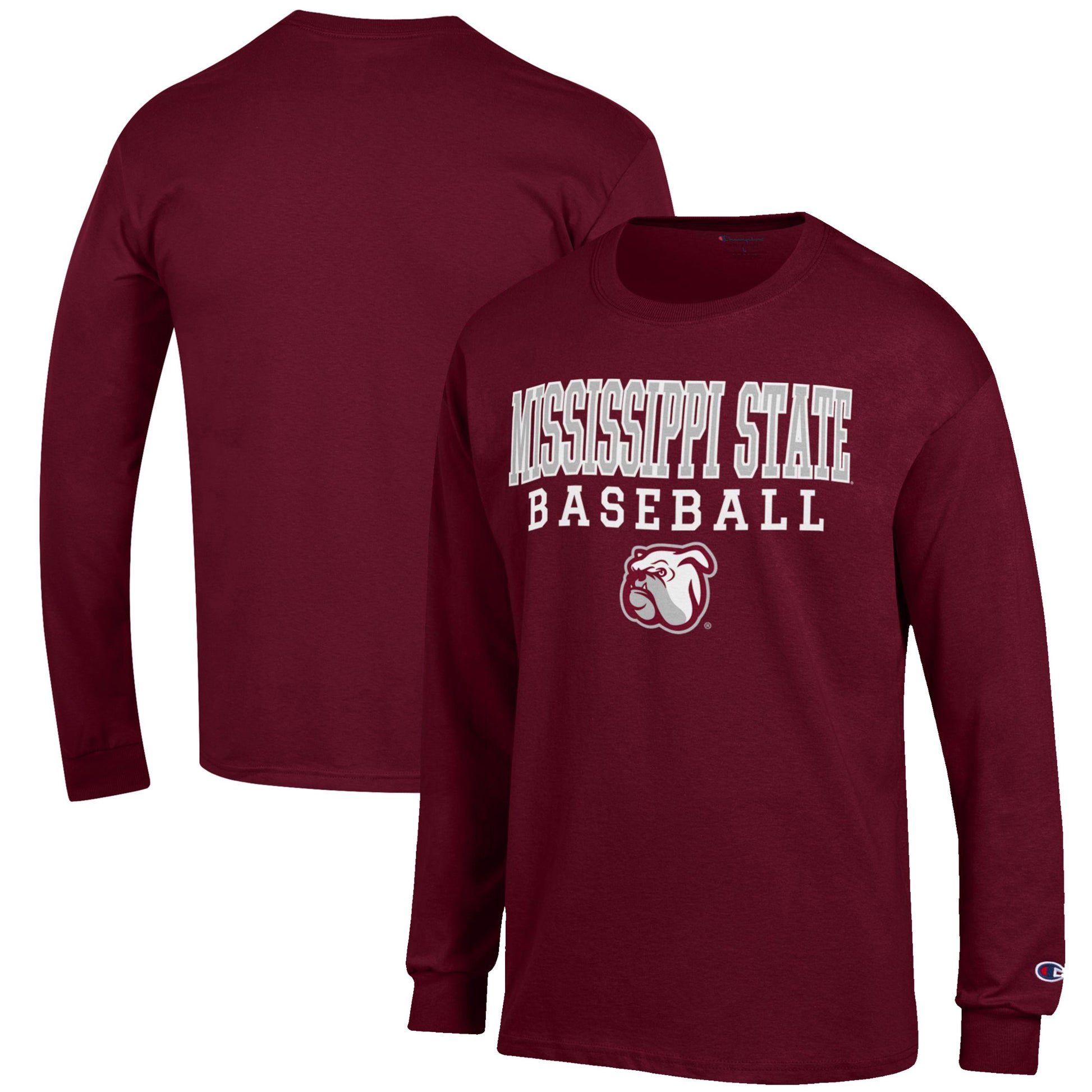 Men's Champion Maroon Mississippi State Bulldogs Baseball Stack Long Sleeve T-Shirt