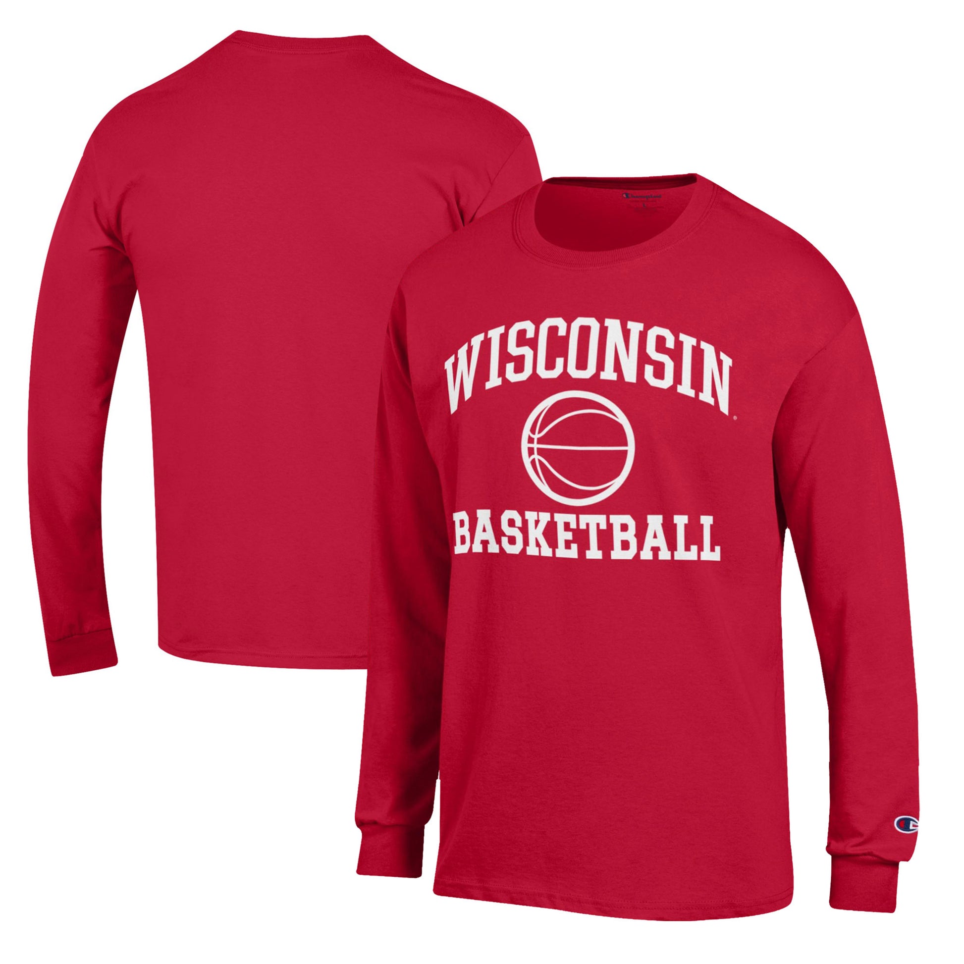 Men's Champion Red Wisconsin Badgers Basketball Icon Long Sleeve T-Shirt