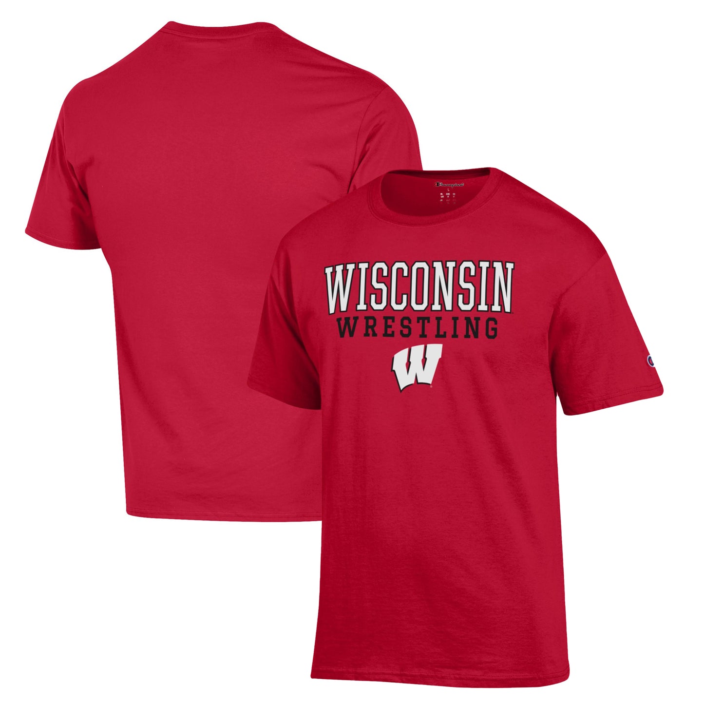 Men's Champion Red Wisconsin Badgers Wrestling Stack Logo T-Shirt