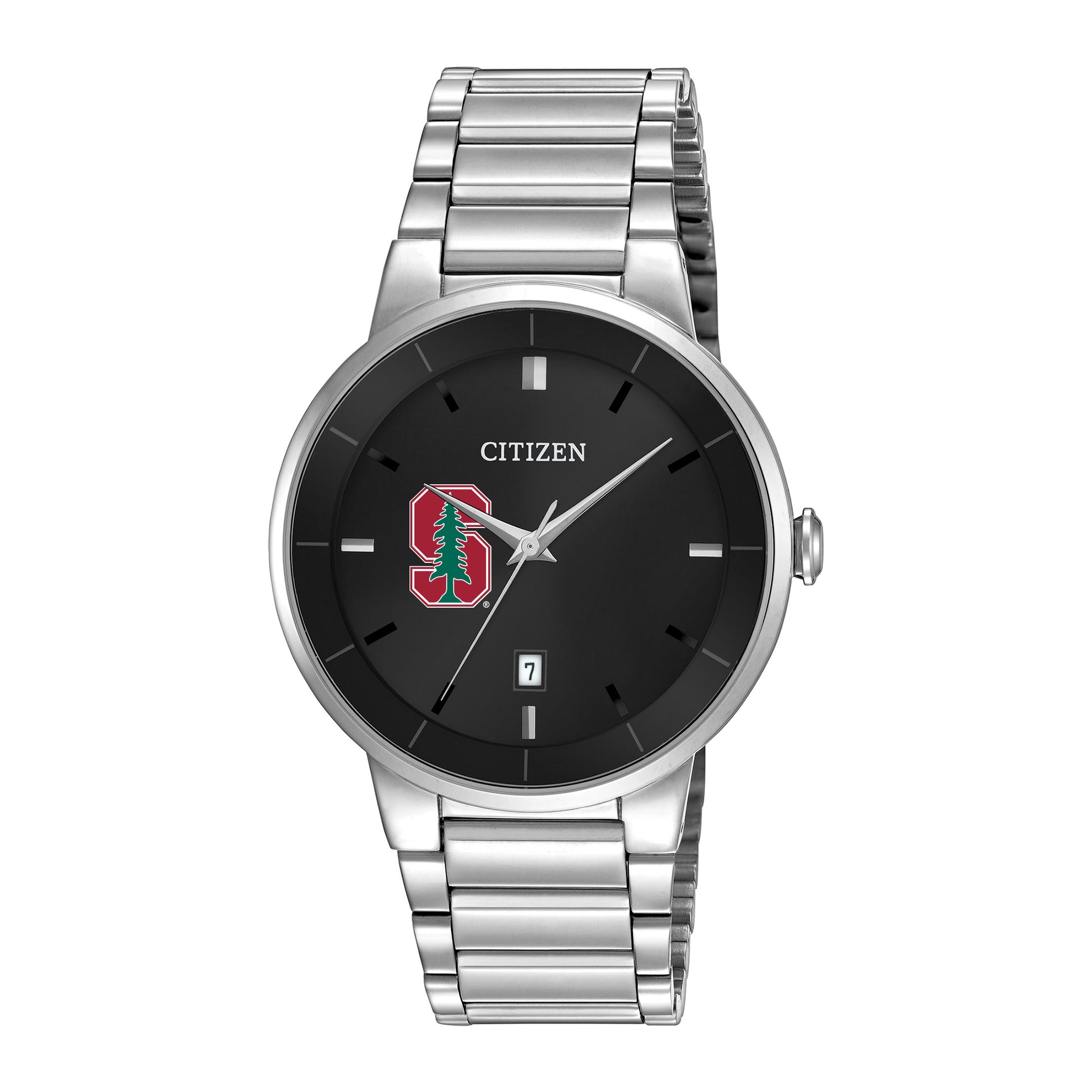 Men's Citizen Watch Silver Stanford Cardinal Black Dial Stainless Steel Watch