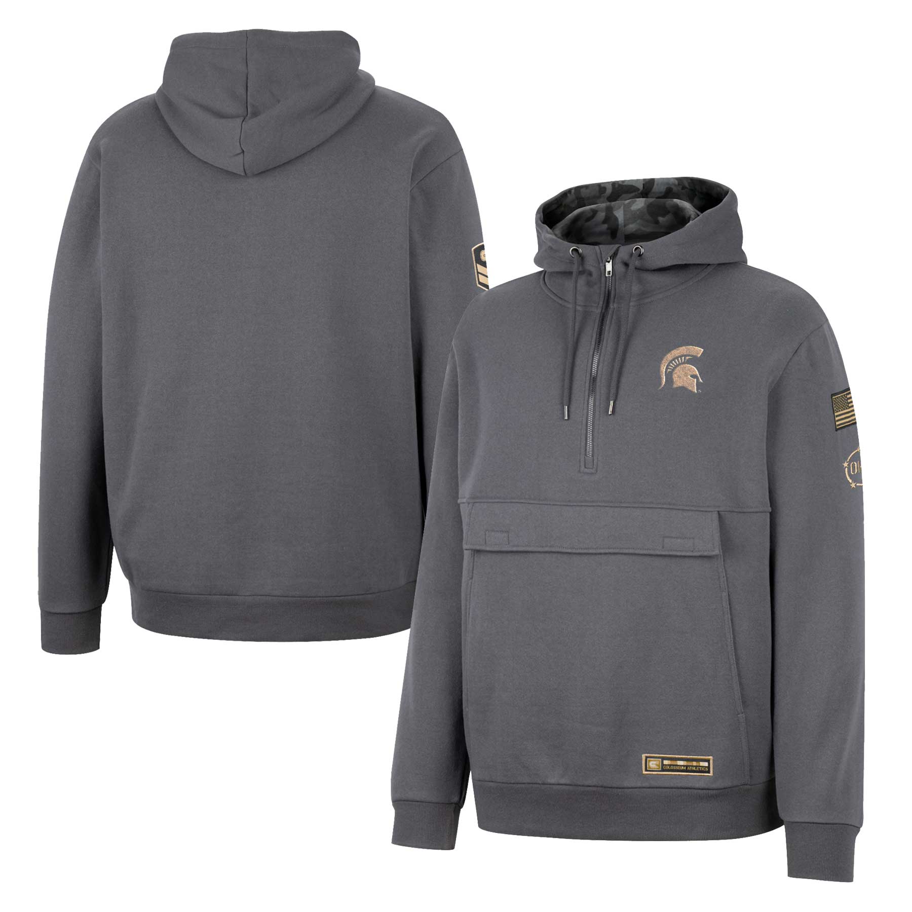 Men's Colosseum Charcoal Michigan State Spartans OHT Military Appreciation Quarter-Zip Hoodie